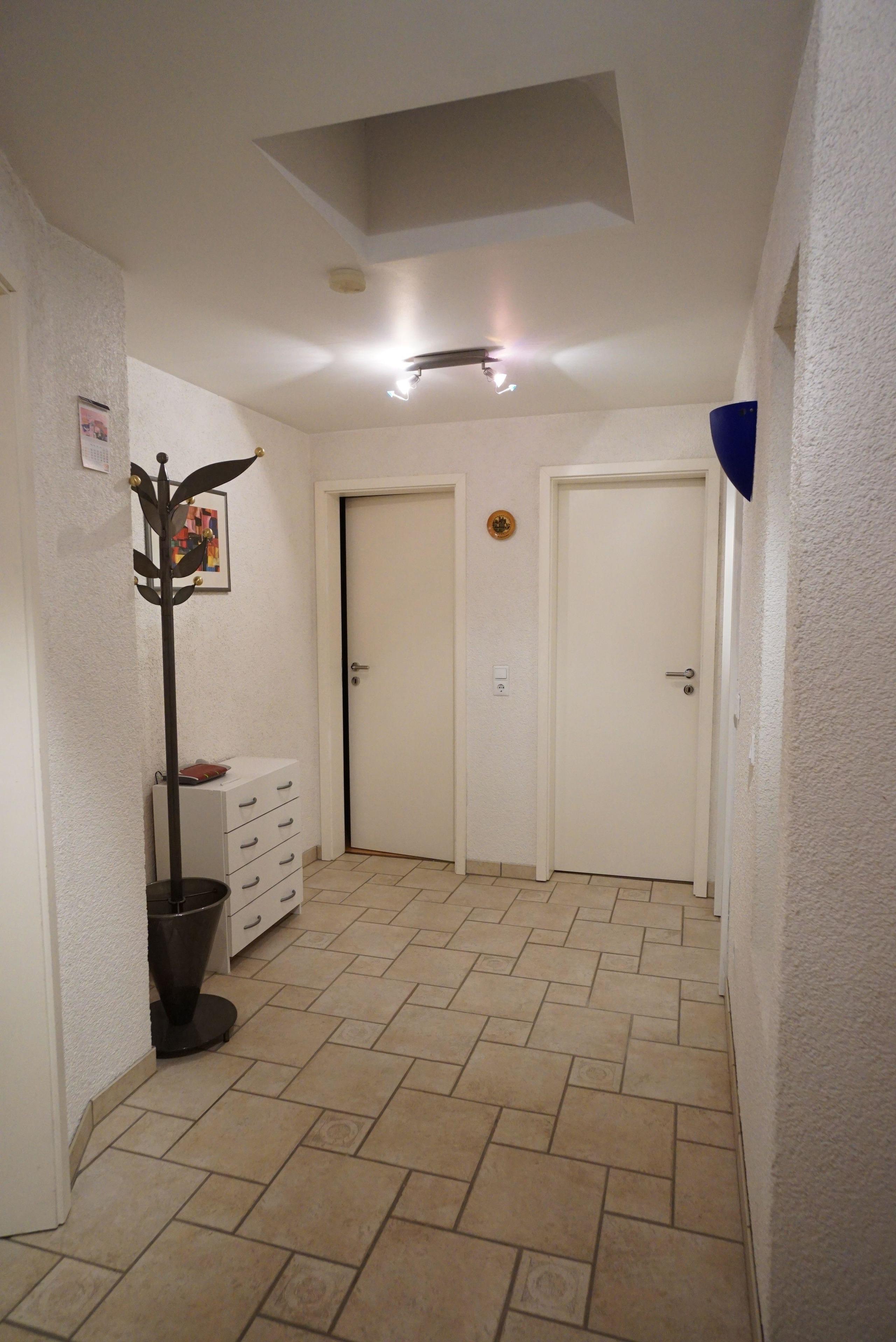 Der Flur verfügt über eine Garderobe, eine Kommode und Schlüsselbrett.