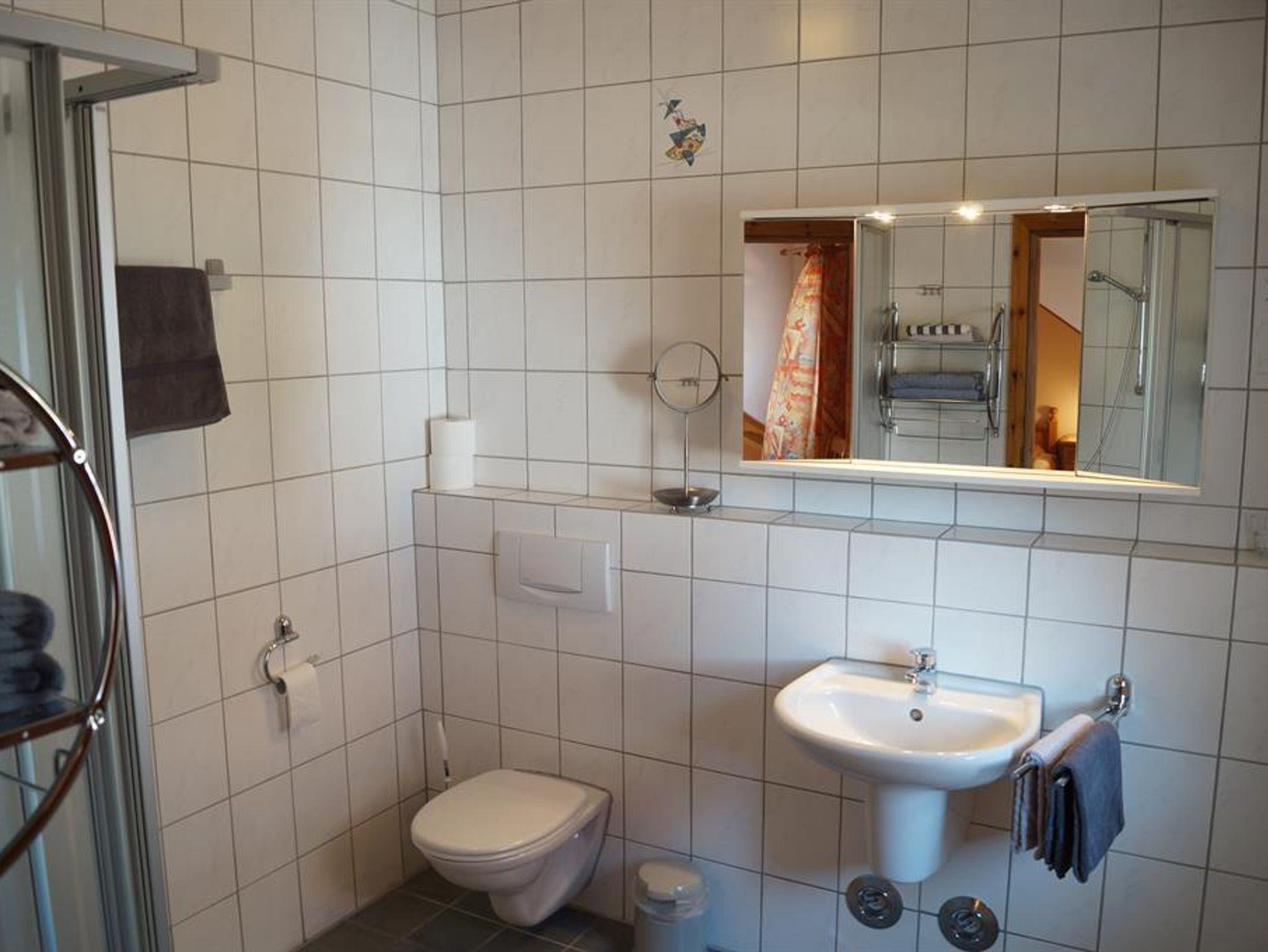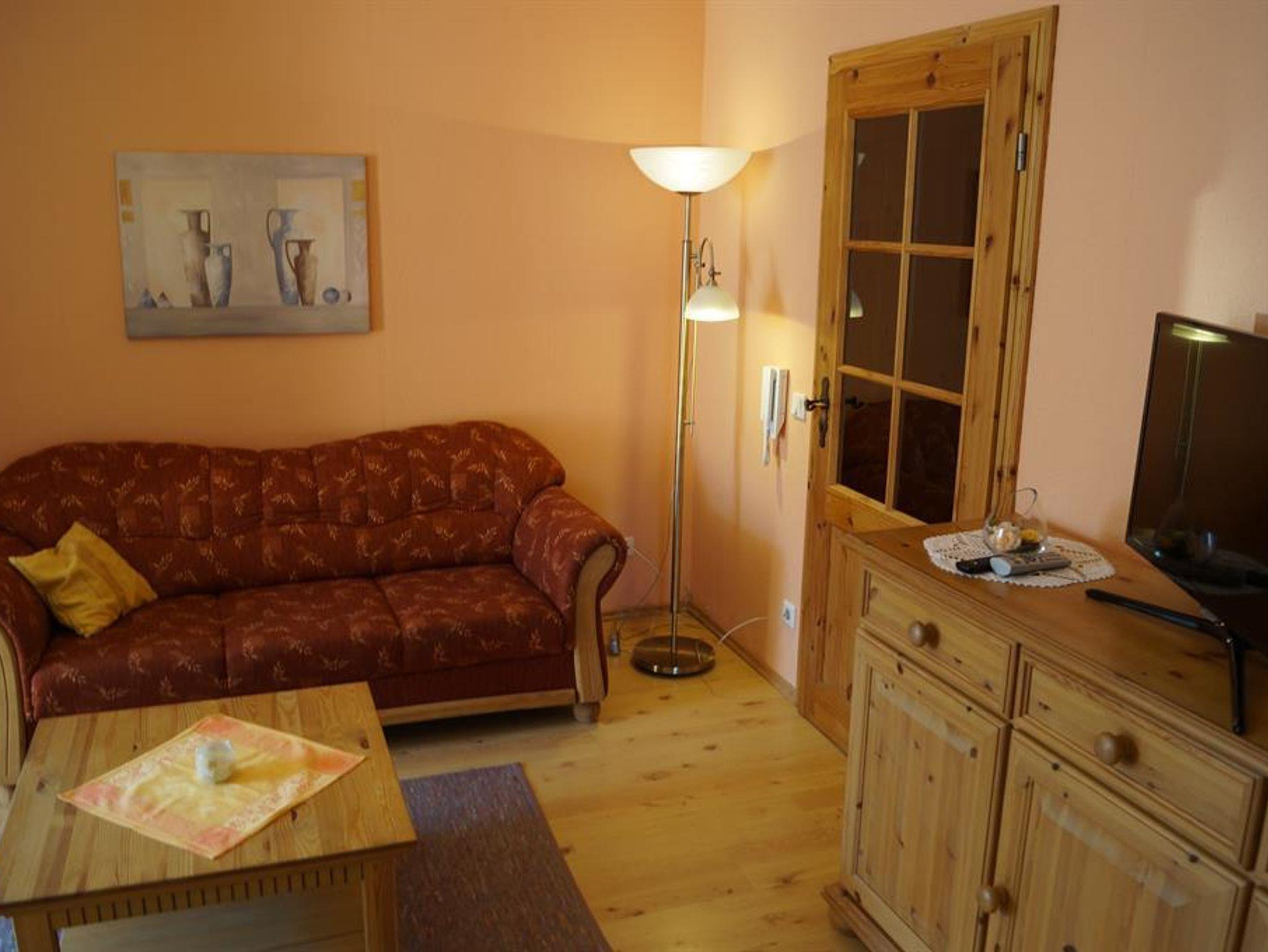 Ferienwohung Hoheburg 59 m², 2 Schlafzimmer, Wohnraum mit Küchenzeile, Bad, Flur und Balkon.
