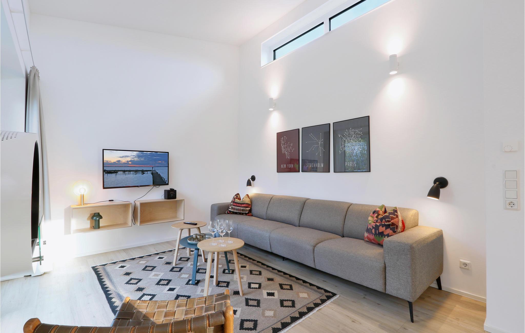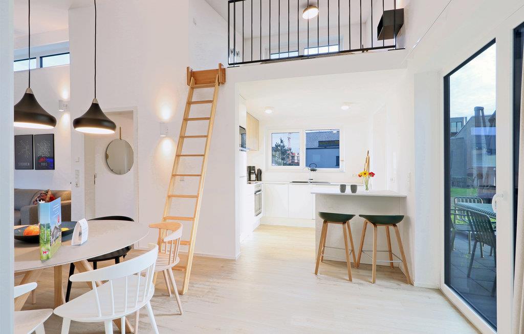 Velkommen til feriehuset ditt, som tilbyr deg som barnefamilie eller en liten gruppe venner en koselig, hjemmekoselig atmosfære med skandinavisk designinnredning. To terrasser for å sitte og spise i solen, biopeisen og din egen badstue lar ikke noe tilbake å ønske. Det åpne kjøkkenet innbyr til matlaging og hygge. Det er et soverom med åpen planløsning på galleriet.