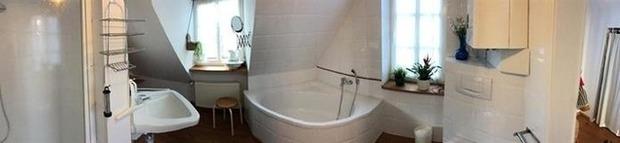 Im Obergeschoss finden Sie ein weiteres Doppelzimmer und zwei Kojen-Betten, die besonders bei Kindern beliebt sind. Zudem steht ein zweites Badezimmer zur Verfügung, das neben einer Dusche auch eine Badewanne bietet, die zum Entspannen einlädt.