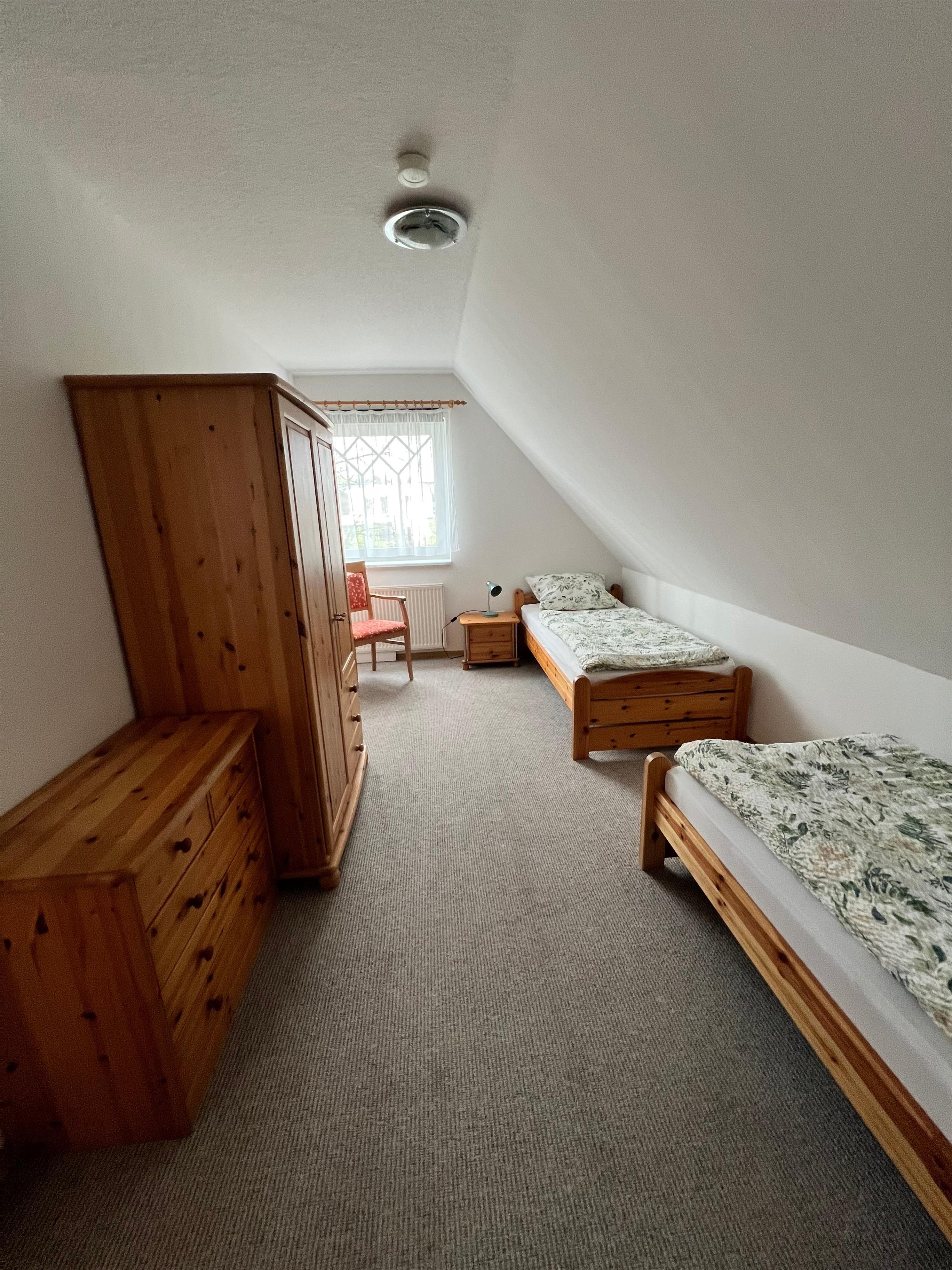 Im Obergeschoss finden Sie ein geschmackvolles Einzelzimmer, ein Zweibettzimmer und ein weiteres Badezimmer mit Badewanne, ideal zum Entspannen nach einem aktiven Tag. Als besonderes Highlight bietet das Haus eine separate Sauna (zusätzlich buchbar gegen Gebühr) , die sich in einem Häuschen hinter dem Carport befindet – ein Genuss für Körper und Seele.