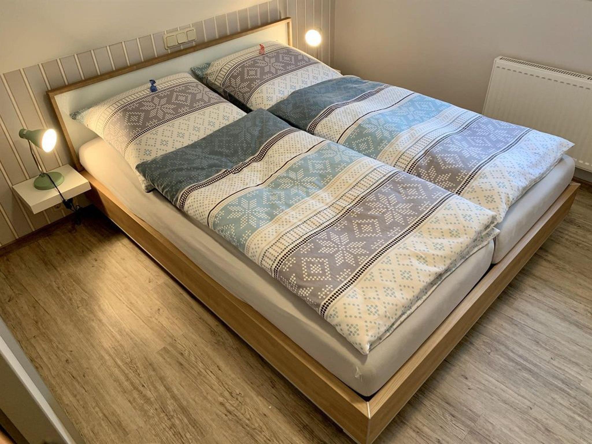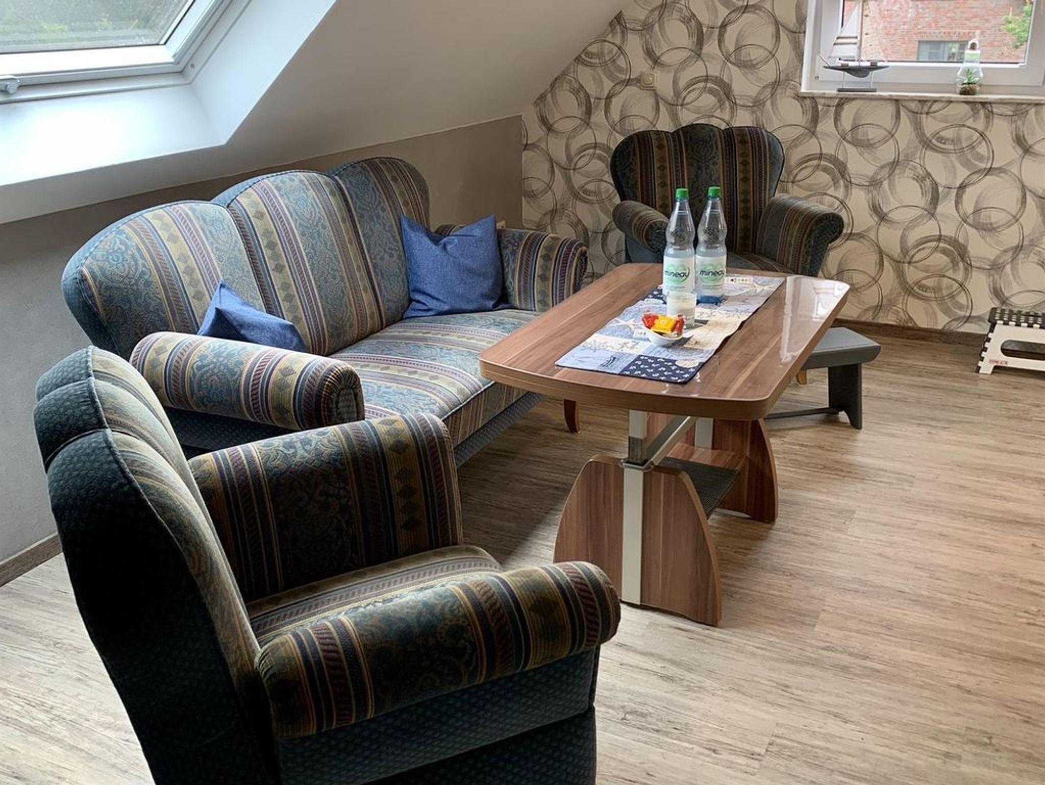 Unsere gut lichtdurchflutete Ferienwohnung in hochwertiger Ausstattung befindet sich im Obergeschoss und bietet genügend Platz für 2 - 3 Personen. Fußbodenerwärmung im Küchen-Wohnbereich und Windfang. Das Ambiente einer im Jahr 2020 fertiggestellten, zeitlich modernen Wohnung lässt keine Wünsche offen. Das 2700 m² große Grundstück bietet ausreichend Freiraum.