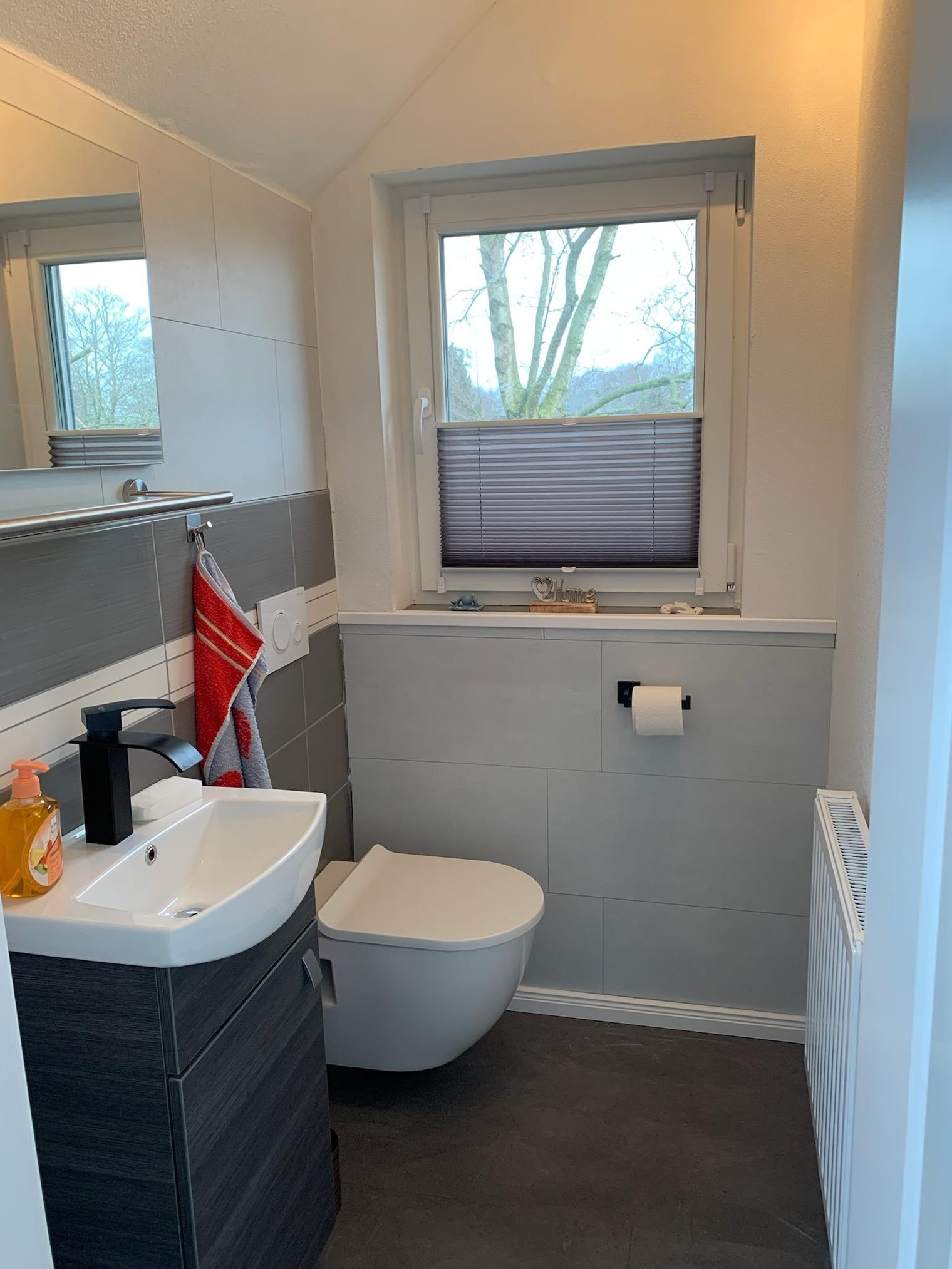 EG: Flur, Bad mit Dusche, Wohnzimmer und Küche, Schlafzimmer, alle Räume mit Fußbodenerwärmung OG: Schlafzimmer, Gäste WC und Leseecke