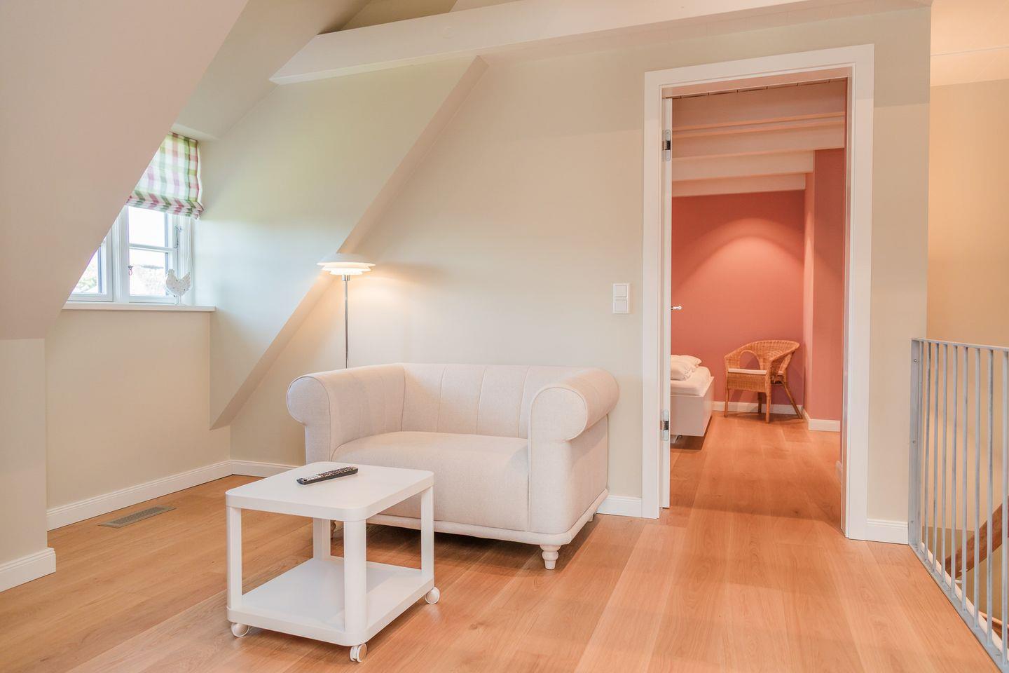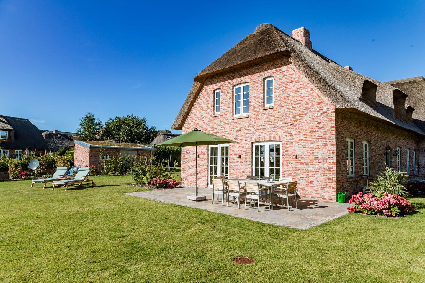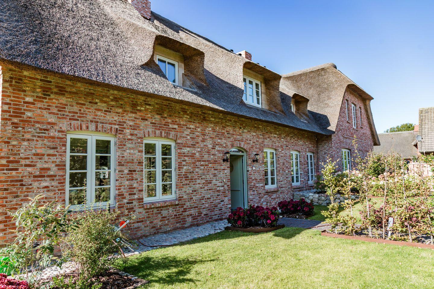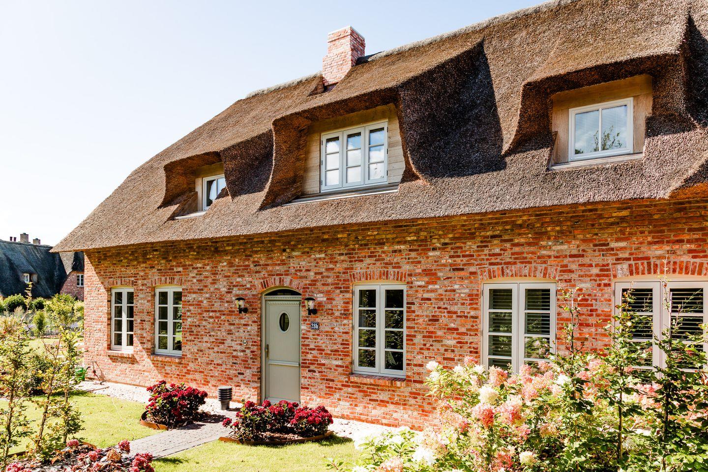 Der reetgedeckte Ferienhausteil Hummerklippen b verfügt über 3 Schlafzimmer und 3 Bäder und bietet somit komfortabel Platz für bis zu 6 Personen zuzüglich einer Kleinkinderaufbettung.