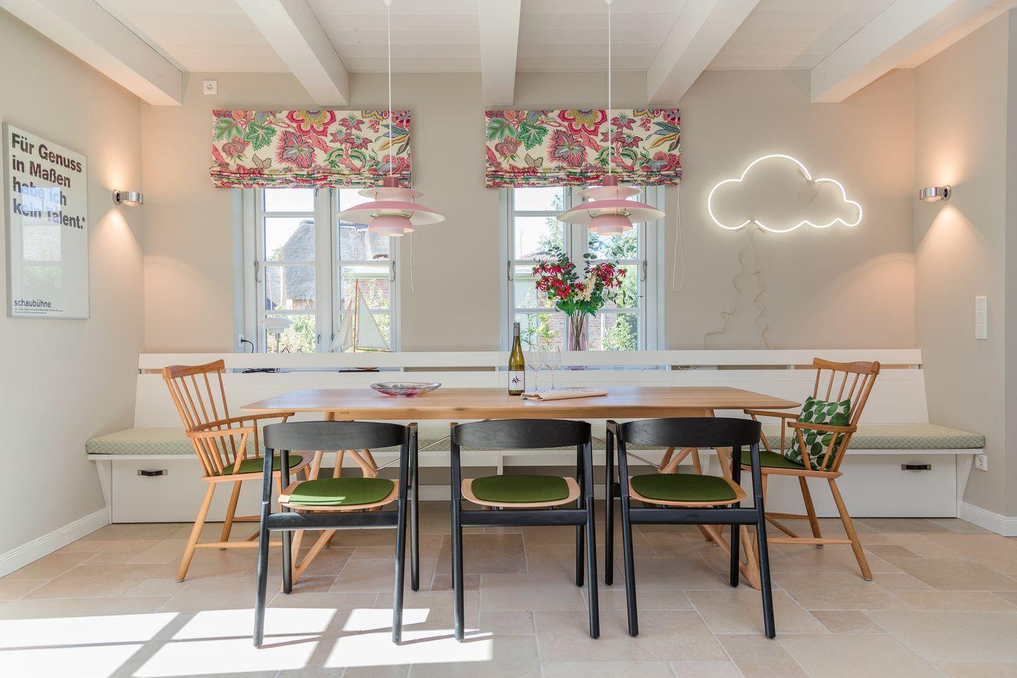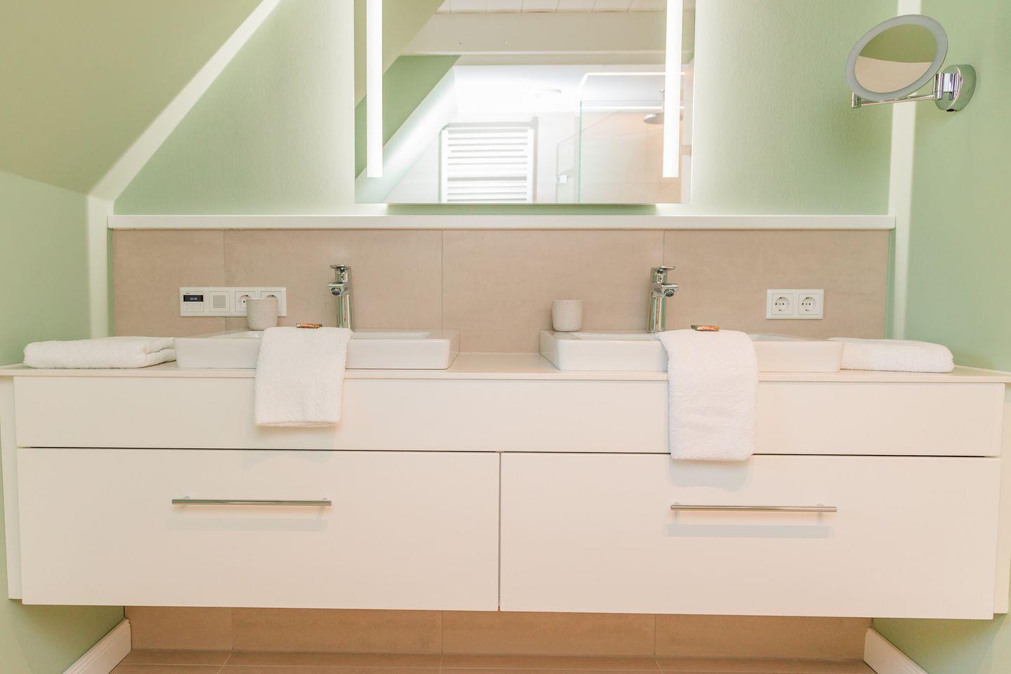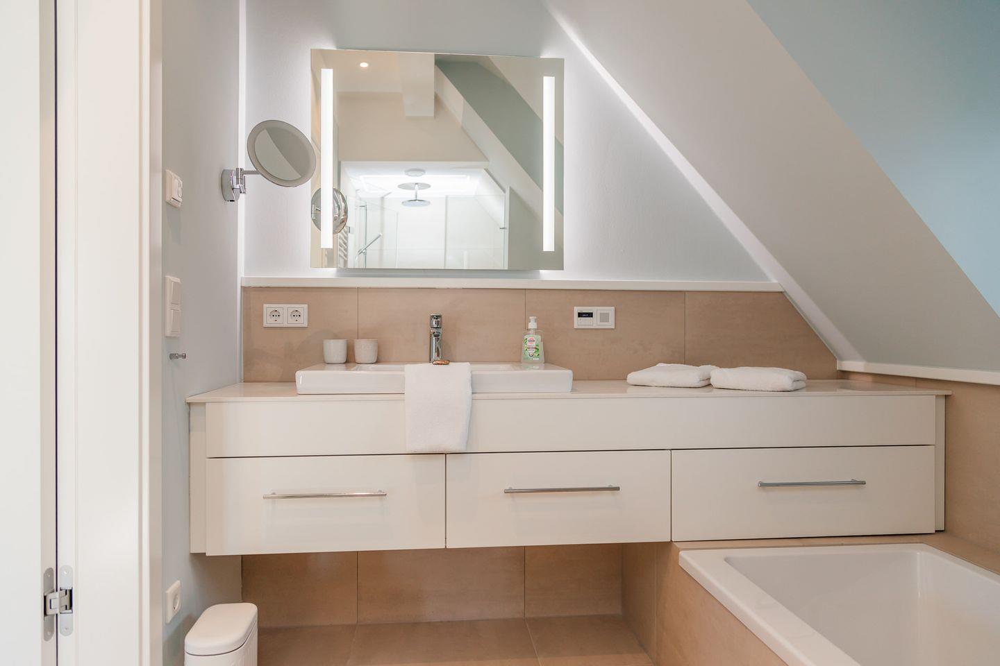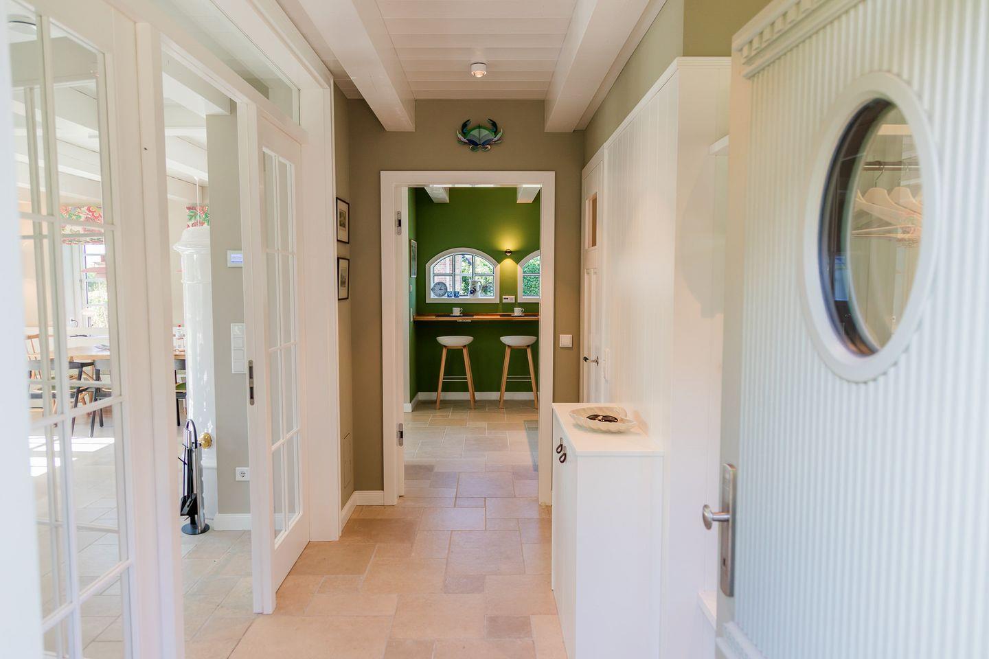 Der reetgedeckte Ferienhausteil Hummerklippen b verfügt über 3 Schlafzimmer und 3 Bäder und bietet somit komfortabel Platz für bis zu 6 Personen zuzüglich einer Kleinkinderaufbettung.