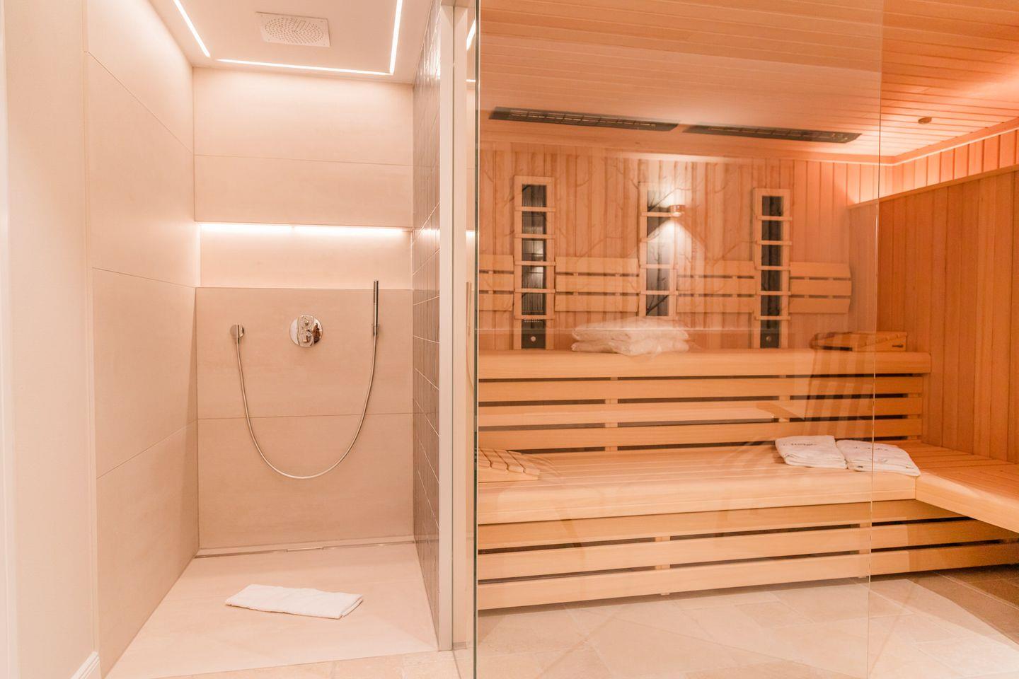 Im Souterrain stehen Ihnen die hauseigene Sauna samt Ruheraum und Dusche zur Verfügung, sowie ein Hauswirtschaftsraum mit Waschmaschine und Trockner.