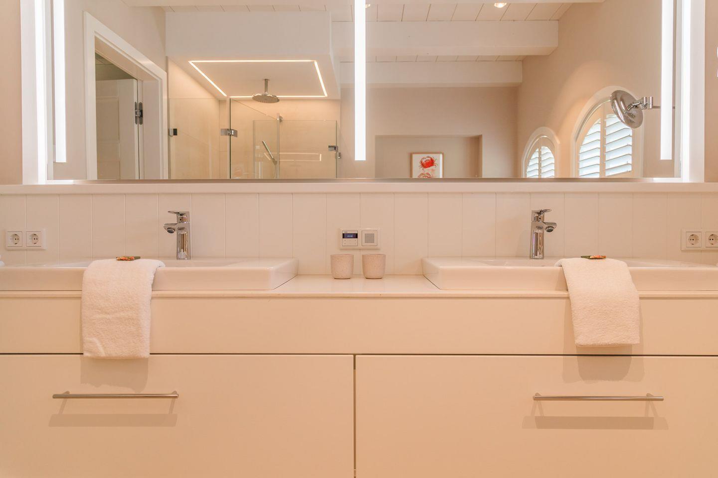 Im Obergeschoss sind zwei weitere Schlafzimmer mit Bad en Suite, sowie ein Loungebereich und ein Büro gelegen.