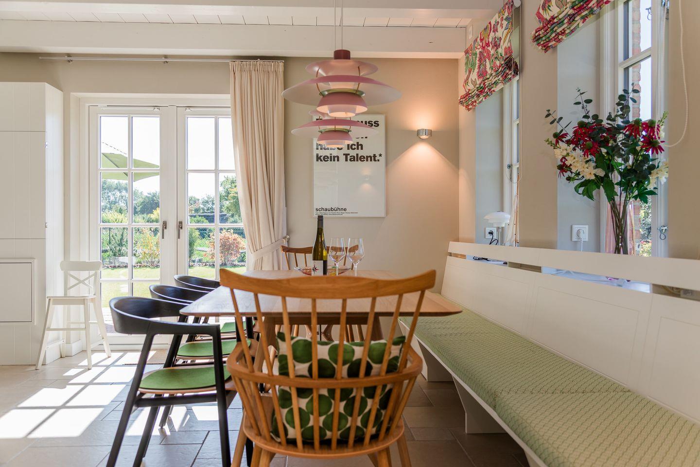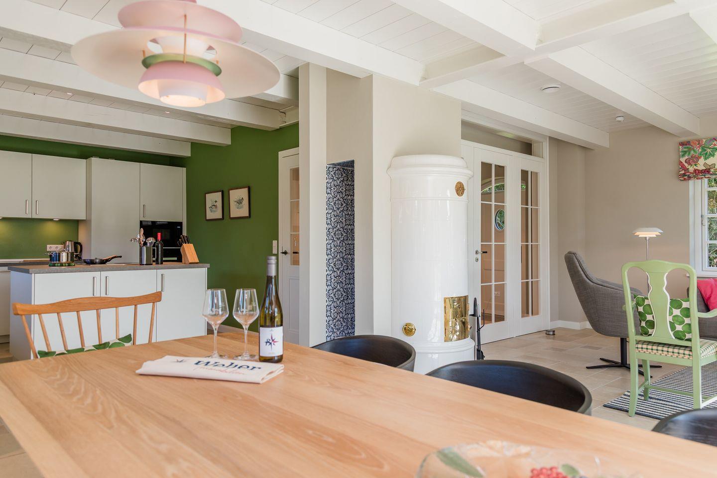 Exklusiver Ferienhausteil unter Reet, hochwertig eingerichtet, mit eigener Sauna und Original Mylin-Kachelofen, sowie eigener Terrasse im großzügigen Garten.
