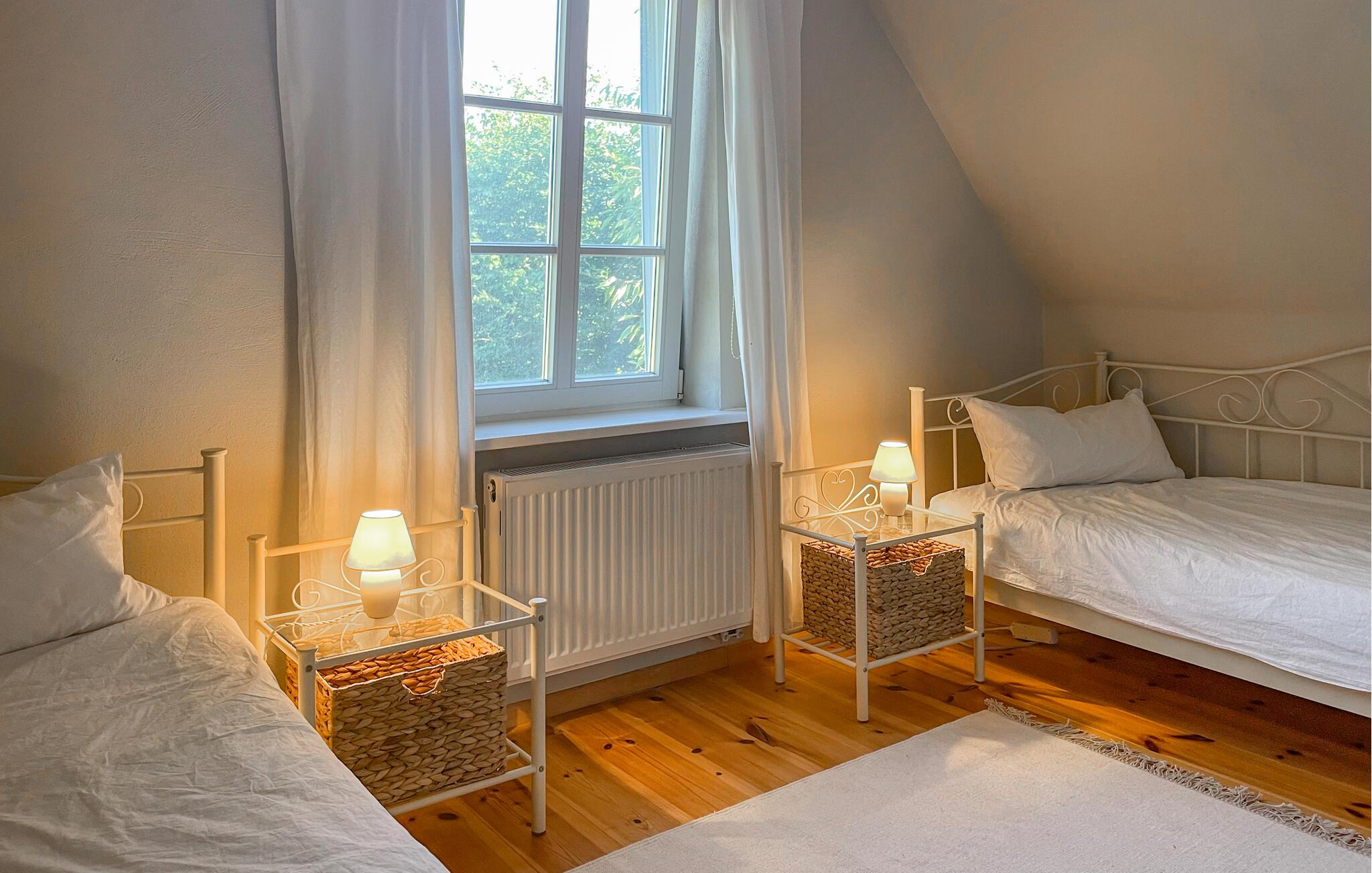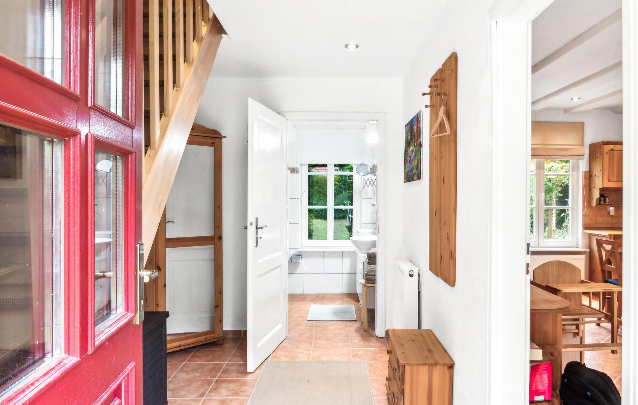 Du vil umiddelbart føle deg hjemme i dette feriehuset på Südmüritz. Det klassiske og tiltalende interiøret strekker seg over to koselige etasjer. Lyse tremøbler og vakre detaljer skaper en varm og innbydende atmosfære. Spesielt den romslige stuen innbyr til avslappende kvelder, mens det gode kjøkkenet har alle bekvemmeligheter du trenger.