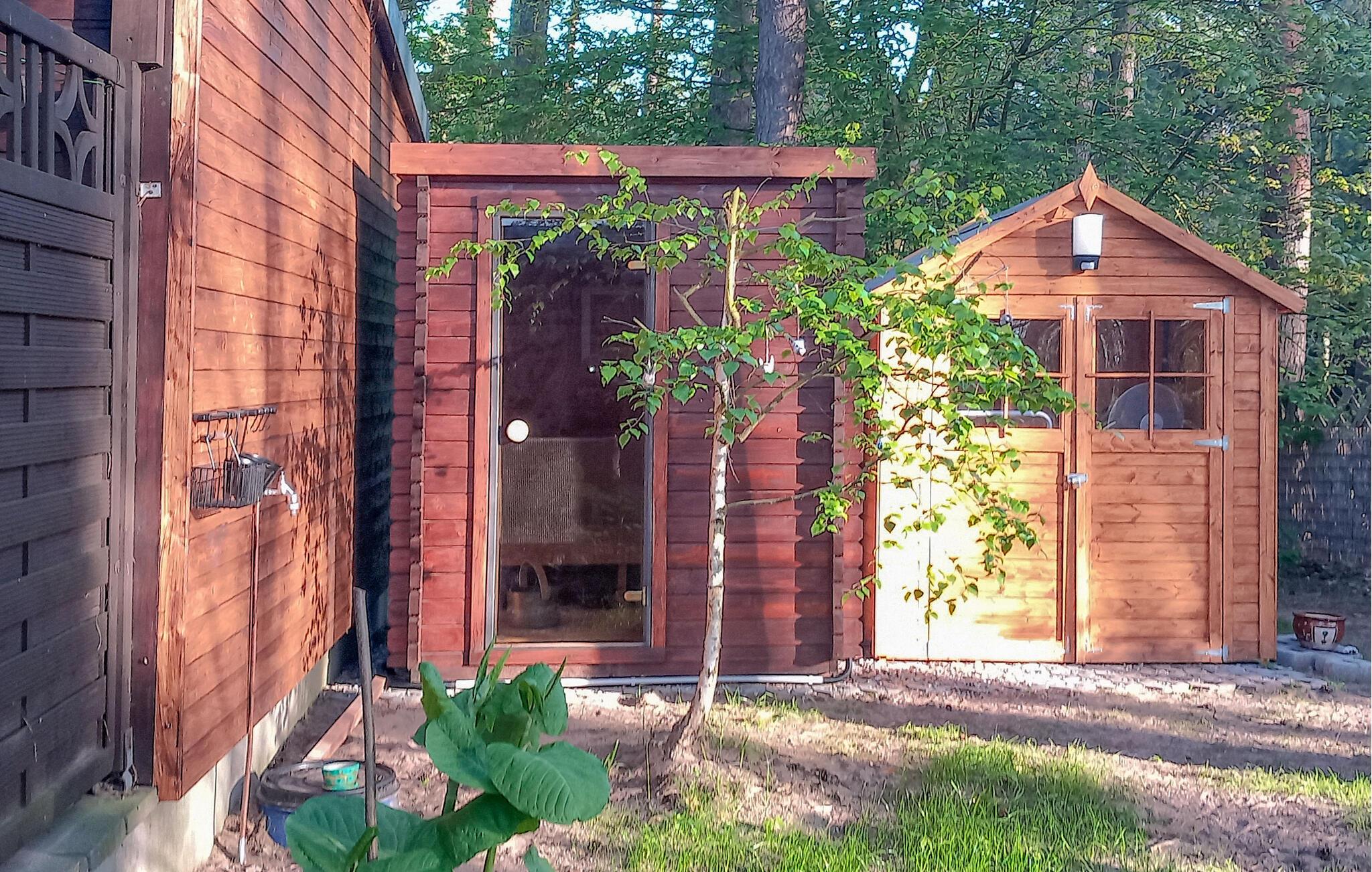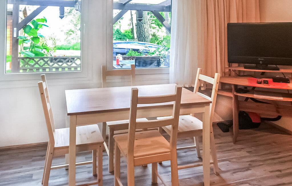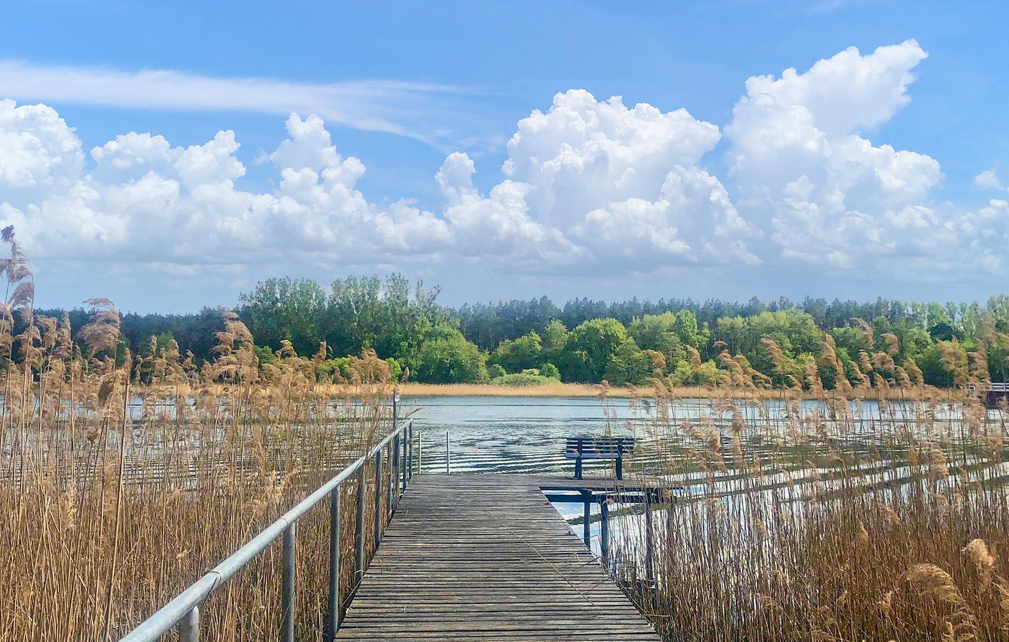 Denne koselige bungalowen for opptil 4 personer ligger bare noen få skritt fra Müritz-armen, forbindelsen mellom Kleine Müritz og Müritzsjøen, på en felles naturtomt i skogen - den ideelle adressen for alle naturglade gjester som søker aktiv avslapning. Det lille komplekset (totalt 4 feriehus) har en privat felles brygge, og det er bare 200 meter til en vakker offentlig badeplass med solterrasse. Den ca. 30 kvadratmeter store røykfrie bungalowen, som sist ble renovert i 2020, er utstyrt med insektsnett på soveromsvinduet og har stue (sovesofa, flatskjerm-TV, radio, spisebord) med åpen kjøkkenkrok (keramiske kokeplater, kjøleskap med fryser, mikrobølgeovn, kaffetrakter, vannkoker, brødrister), soverom (dobbeltseng 1,60 m) og et renovert bad med dusj/WC. Det er også en overbygd, møblert terrasse, utendørs badstue, grill (bruk avhengig av gjeldende skogbrannvarslingsnivå!), felles brygge og parkeringsplass. Sluttrengjøring er inkludert i totalprisen. Vennligst ta med egne håndklær. Betales på stedet: Strøm og vann etter forbruk. Hunder er tillatt på denne eiendommen.
