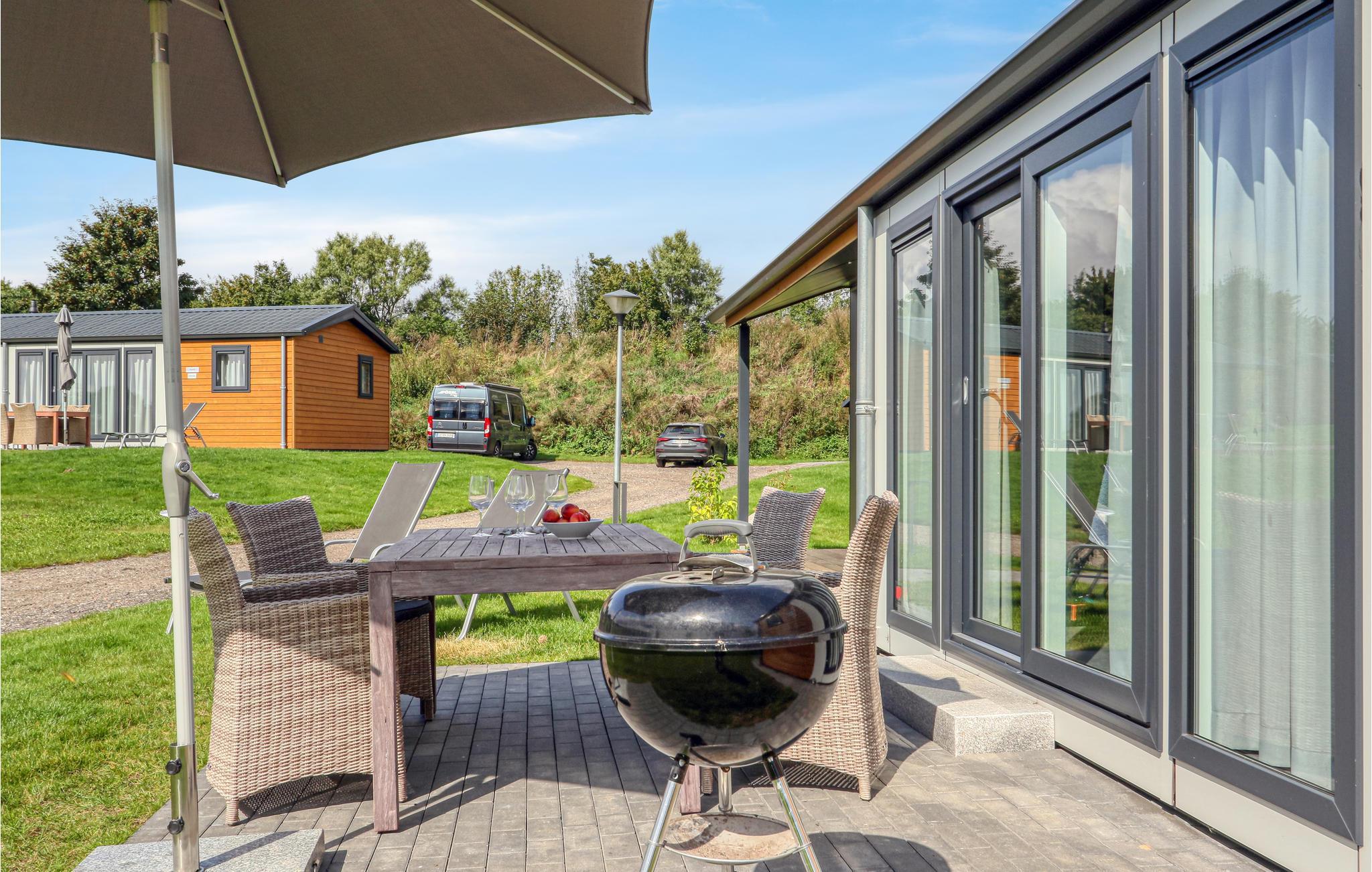Den komfortable og koselig innredede hytta har to separate soverom og en stue med kjøkkenkrok. Her er det fire kokeplater, oppvaskmaskin, kjøleskap og kaffemaskin. Hagemøbler og solsenger er tilgjengelig, slik at du kan runde av en actionfylt dag med et kveldsmåltid i frisk luft. En grill kan lånes kostnadsfritt. På forhåndsforespørsel og avhengig av tilgjengelighet kan du låne en barnestol for oppholdet ditt mot en liten avgift.