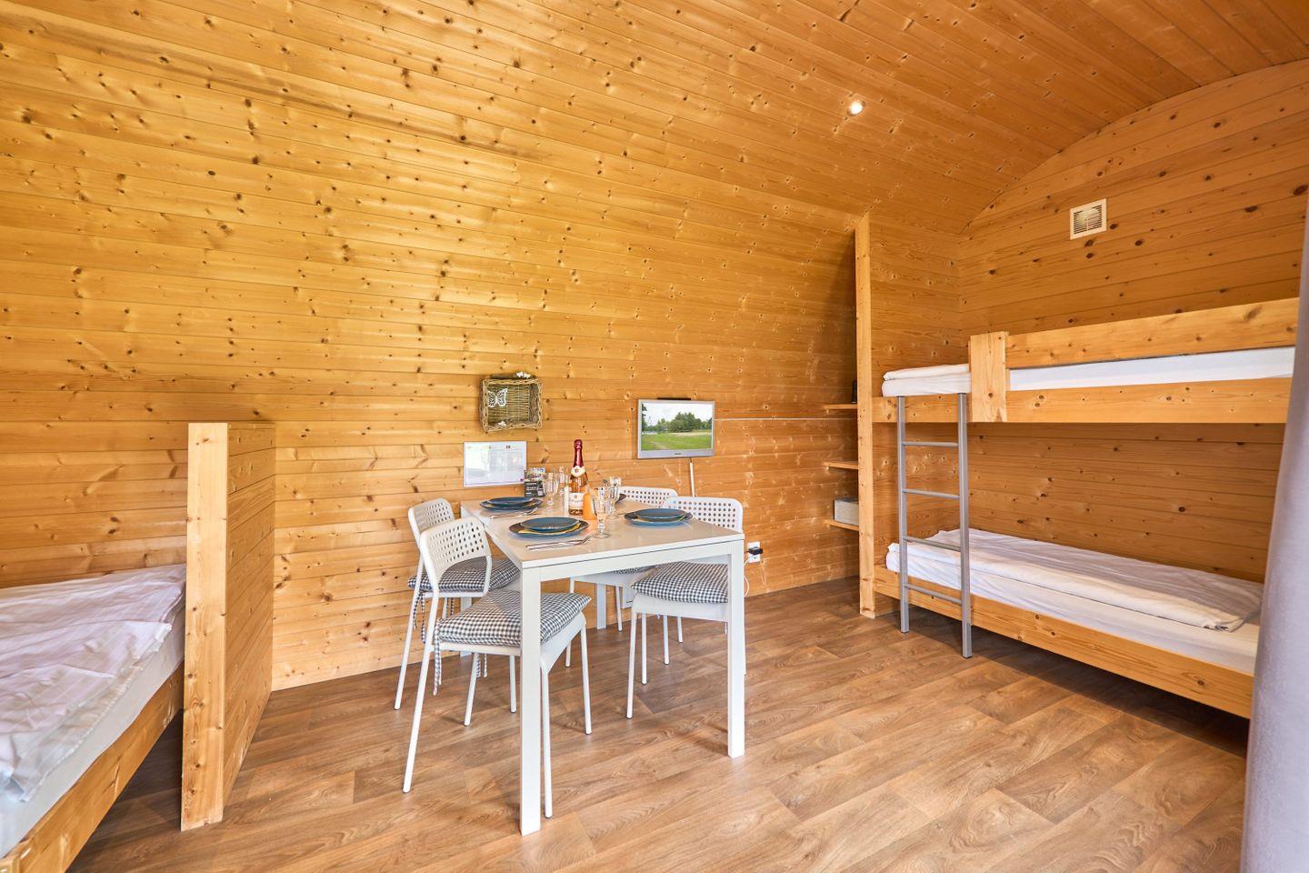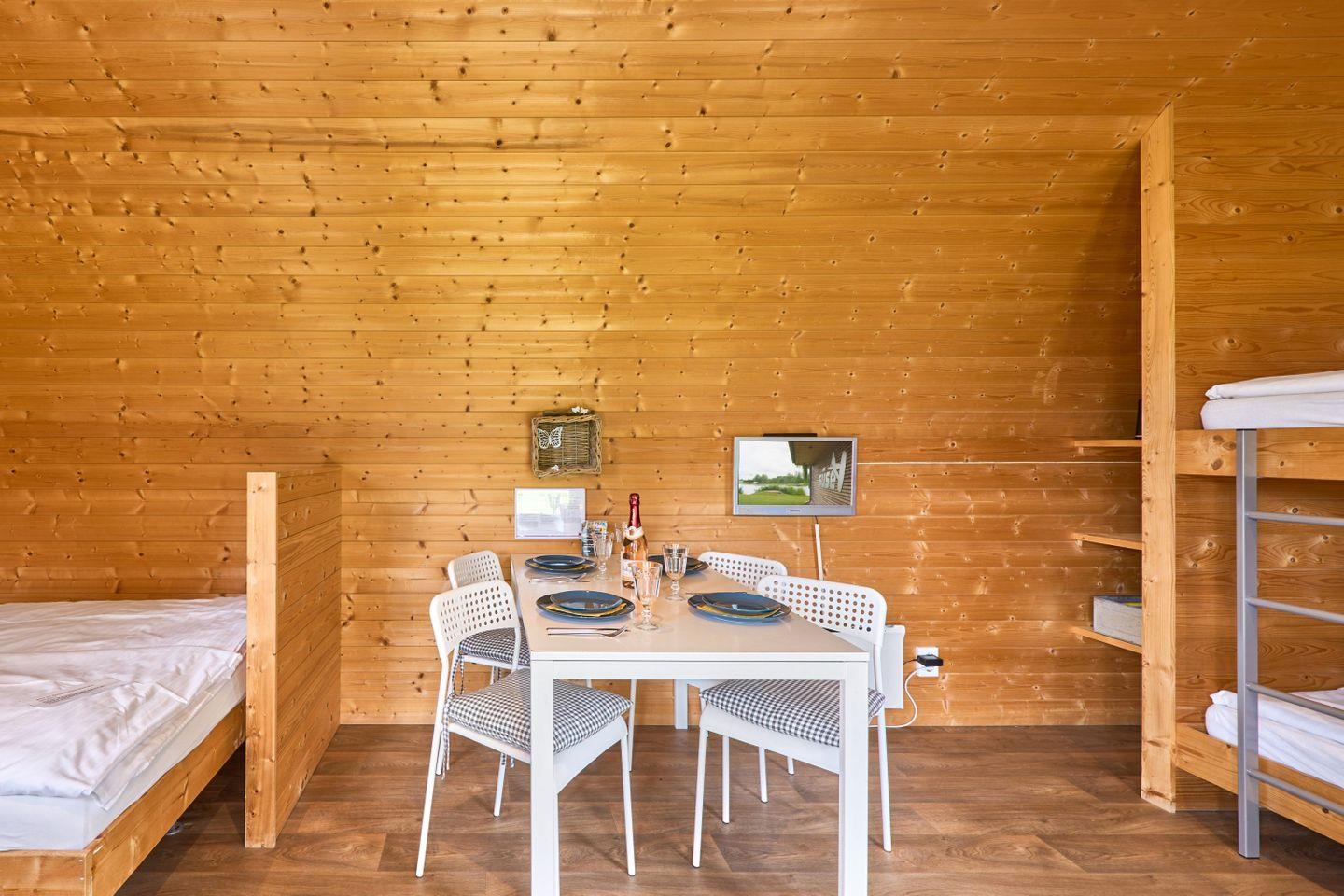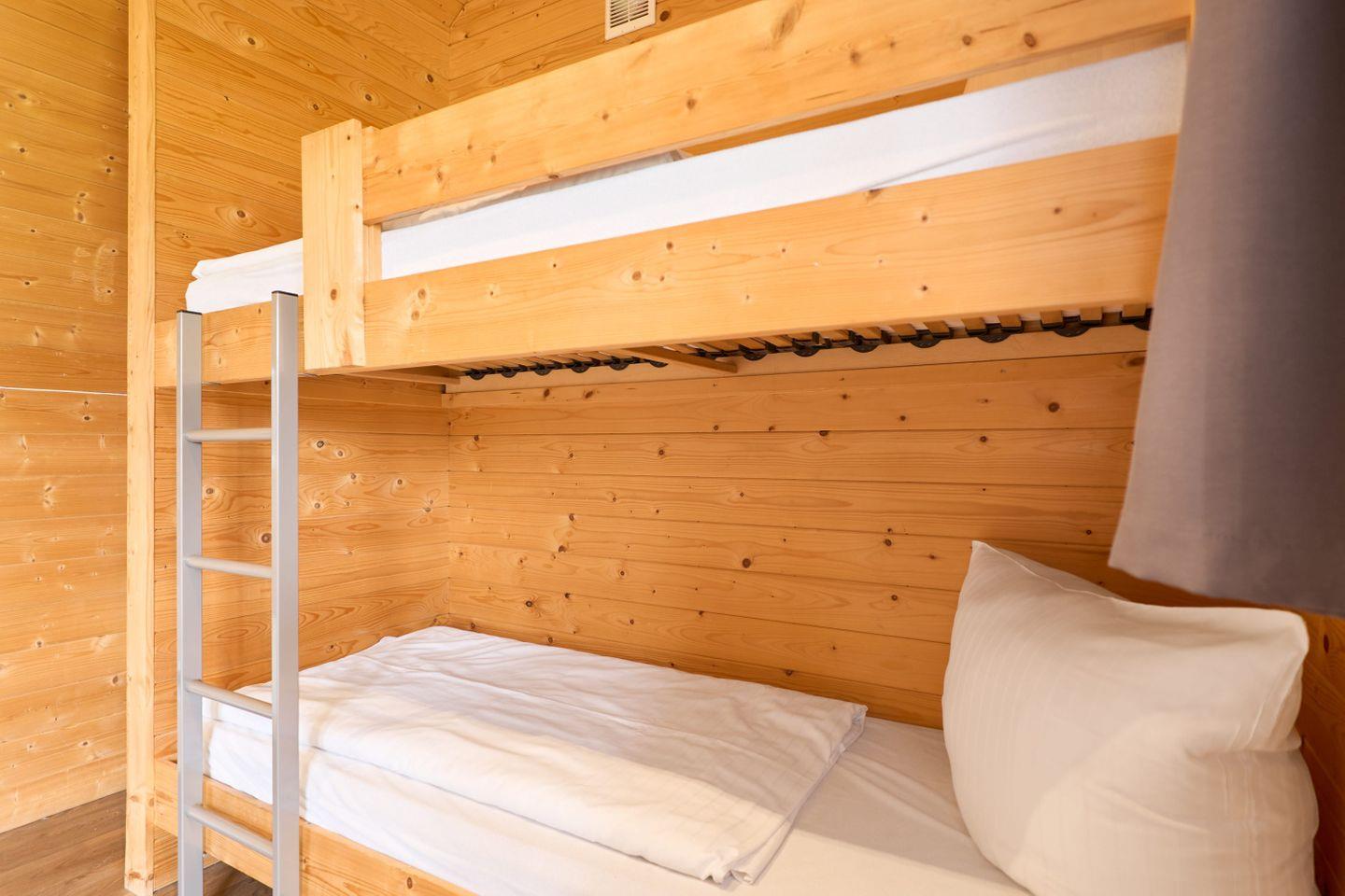 Kleine Wohnraum-Lodge mit Doppel- und Etagenbett, ideal für Familien oder Gruppen