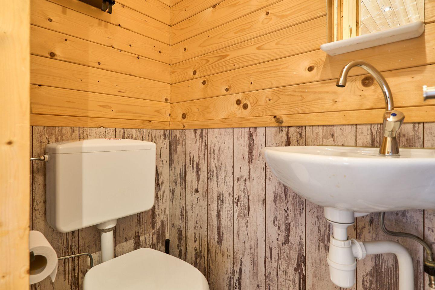 Toilette und Waschbecken mit Kaltwasser in der Lodge