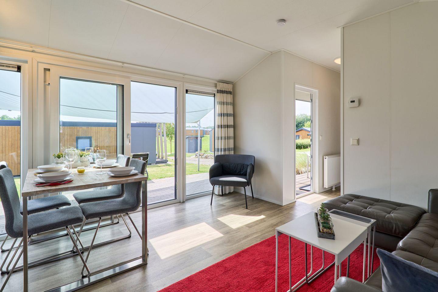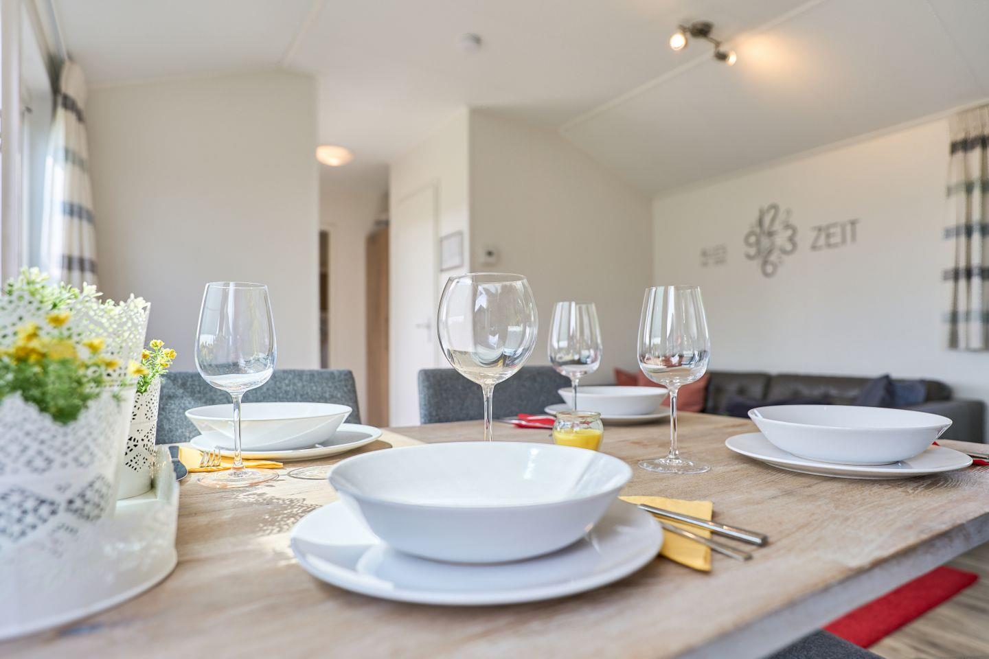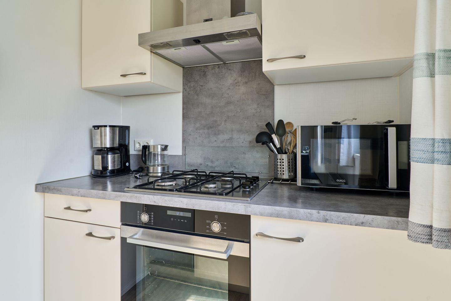 Im Inneren finden Sie eine modern gestaltete, offene Küche, die direkt in den Wohnbereich übergeht. Ausgestattet mit einem Herd, Backofen, Kühlschrank, Gefrierfach, Geschirrspüler, Kaffeemaschine, Wasserkocher, Toaster und vollständigen Küchenutensilien sowie Geschirr und Besteck, bietet die Küche beste Voraussetzungen für gemeinsame Kochabende. Am Esstisch können Sie in geselliger Runde Ihre Mahlzeiten genießen; anschließend lädt das wohnliche Sofa zum Entspannen ein. Für Unterhaltung stehen Ihnen ein TV und ein Radio zur Verfügung.