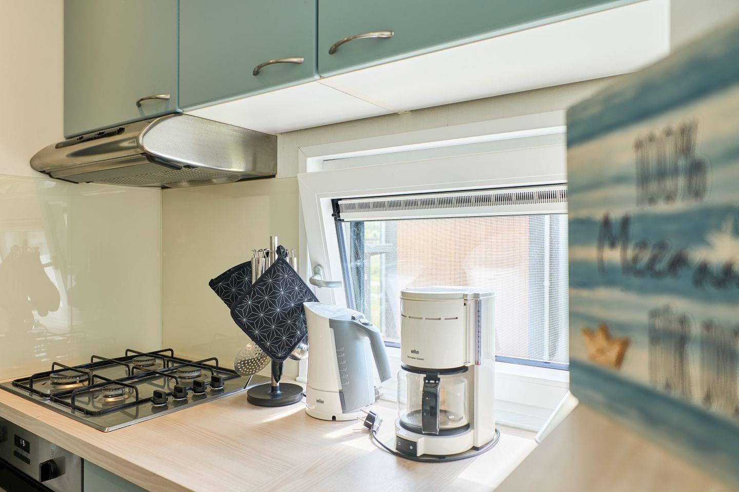 Die offene Küche ist zum Wohnzimmer hin gestaltet und bietet moderne Geräte wie Kühlschrank mit Gefrierfach, Backofen, Herd, Spülmaschine, Wasserkocher, Toaster und Kaffeemaschine. Auch an Küchenutensilien, Geschirr und Besteck sowie Geschirrhandtücher ist gedacht. Im Wohnbereich erwartet Sie eine gemütliche Sofaecke mit Sofa und ein Esstisch, an dem bis zu vier Personen bequem Platz finden. Für Unterhaltung stehen Ihnen ein Fernseher sowie kostenfreies WLAN zur Verfügung.