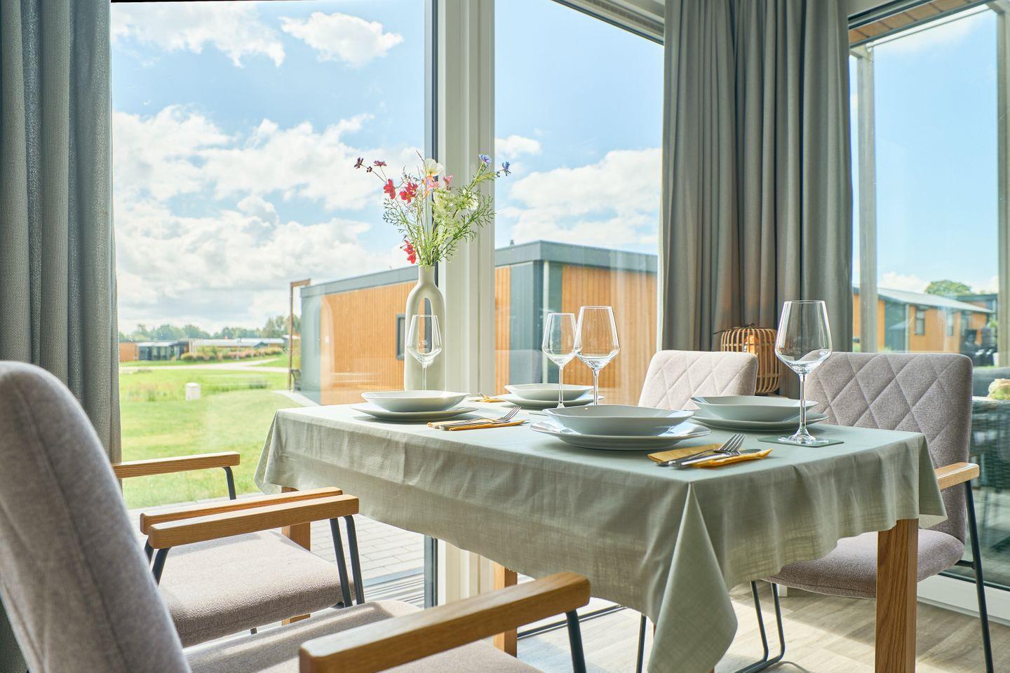 Eine möblierte Terrasse mit Gartenmöbeln lädt zum Verweilen im Freien ein. Direkt am Haus steht Ihnen ein kostenloser Parkplatz zur Verfügung, zudem gibt es eine Ladestation für Elektroautos auf dem Gelände. Der Ferienpark bietet Böllerverbot, somit ist ein ruhiger Aufenthalt – beispielsweise zu Silvester – möglich.
