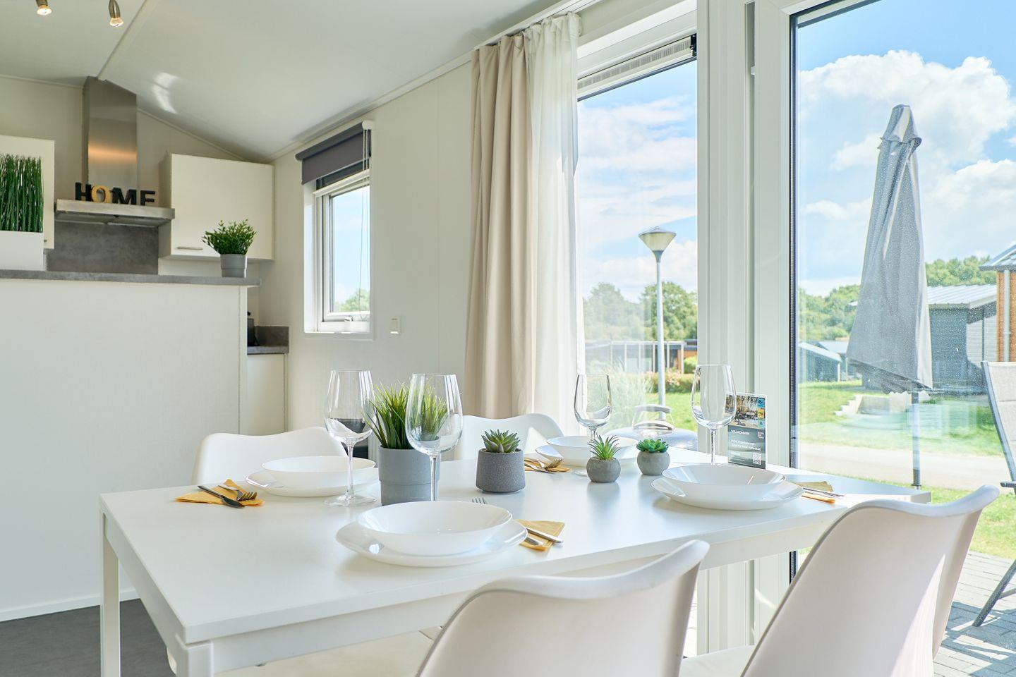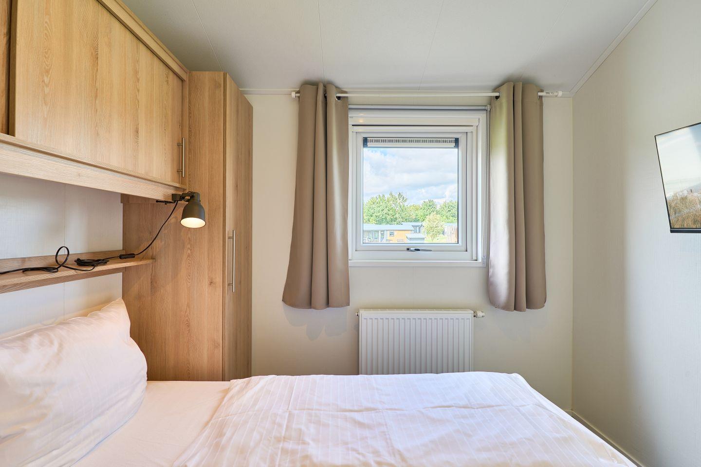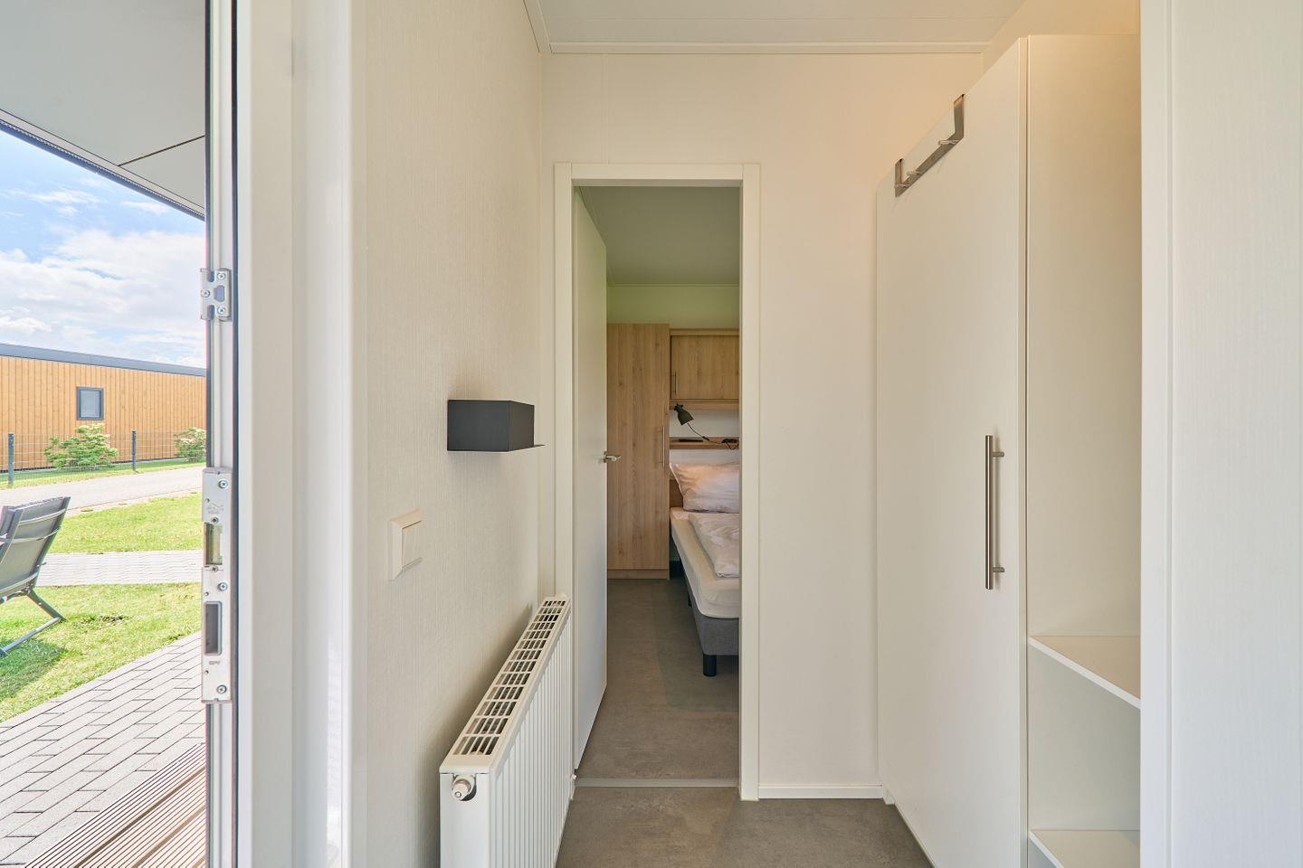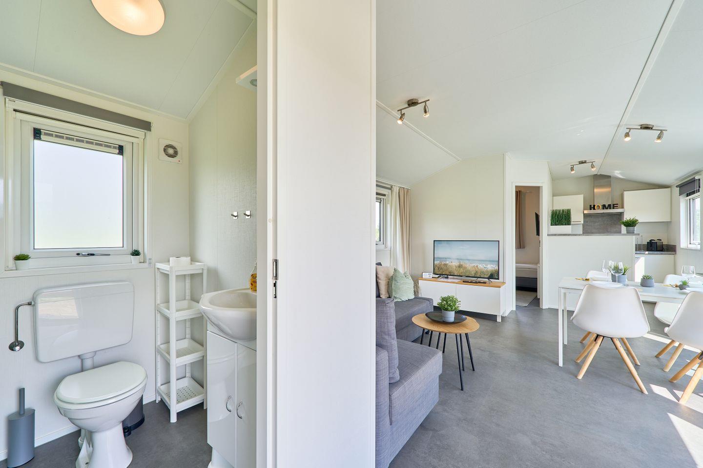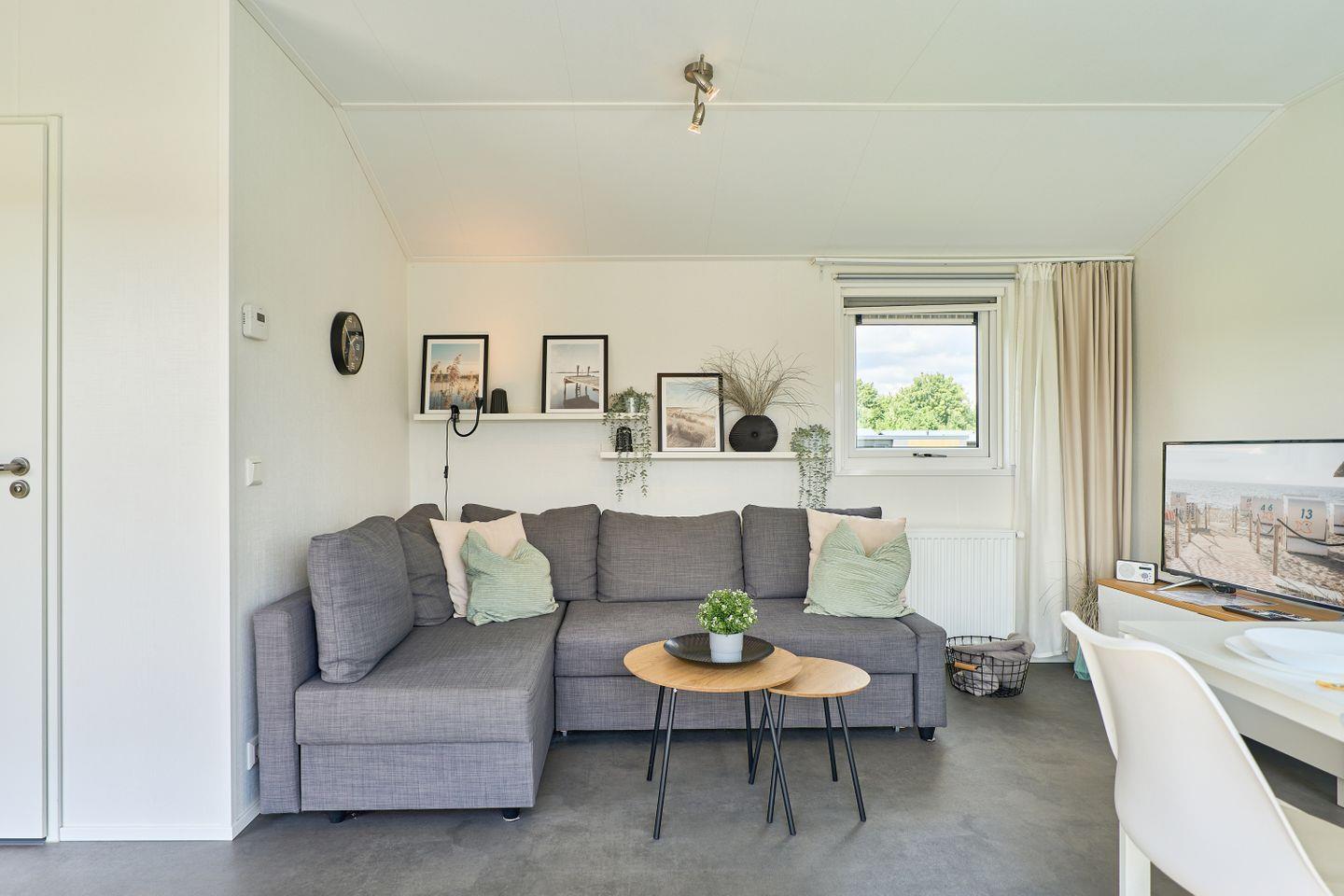 Das Ferienhaus erstreckt sich über ca. 40 m² und bietet mit zwei separaten Schlafzimmern und insgesamt fünf Schlafmöglichkeiten ausreichend Platz für bis zu fünf Personen. Im offen gestalteten Wohn- und Essbereich können Sie gesellige Abende verbringen oder in Ruhe die Umgebung genießen. Eine moderne und voll ausgestattete Küche steht Ihnen zur Verfügung, inklusive Herd, Backofen, Kühlschrank mit Gefrierfach, Spülmaschine, Kaffeemaschine, Wasserkocher, Toaster sowie Geschirr und sämtlichen Küchenutensilien. Am Esstisch finden alle Gäste bequem Platz. Der lichtdurchflutete Wohnbereich ist durch moderne Fenster mit Sichtschutz hell und freundlich gestaltet und lädt mit einem bequemen Sofa zum Verweilen ein.