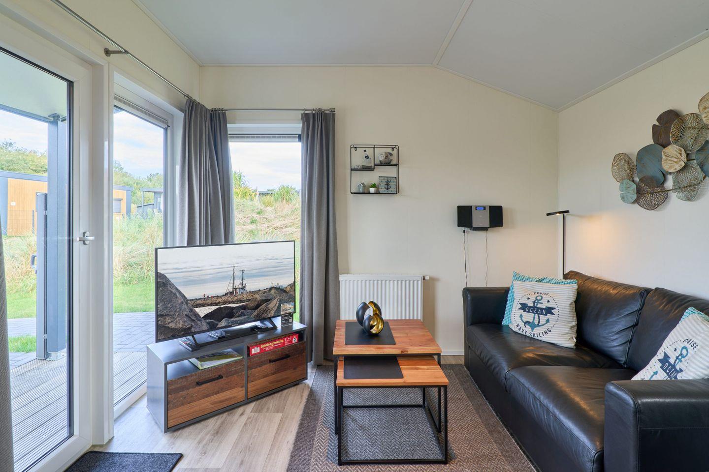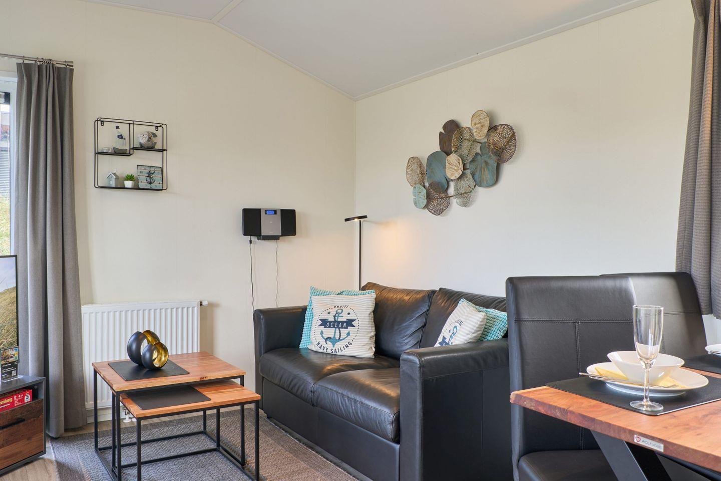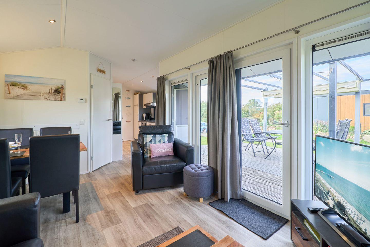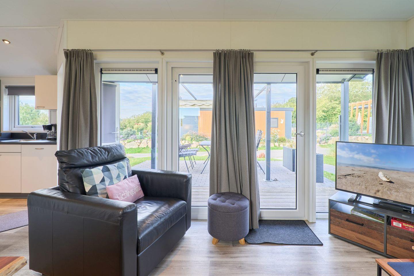 Das Chalet verfügt über drei Zimmer, darunter zwei separate Schlafzimmer mit insgesamt vier Schlafmöglichkeiten. Zwei der Schlafplätze sind speziell für Kinder vorgesehen und bieten Familien mit Kindern ausgezeichneten Komfort. Ein helles Wohnzimmer mit Sofaecke lädt zum Entspannen ein. Der offene Küchenbereich grenzt direkt an den Essbereich und das Wohnzimmer an und ist mit zahlreichen Annehmlichkeiten ausgestattet. Für die gemeinsame Zubereitung von Mahlzeiten stehen Ihnen ein Herd, Backofen, Kühlschrank mit Gefrierfach, Geschirrspüler, Kaffeemaschine, Wasserkocher, Toaster sowie sämtliche Küchenutensilien, Geschirr und Besteck zur Verfügung. Ebenso sind Geschirrhandtücher vorhanden. Ein moderner Esstisch bietet genug Platz für alle Gäste.