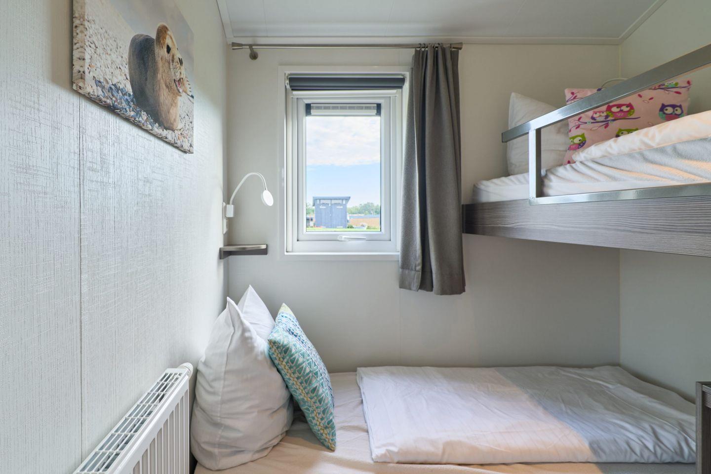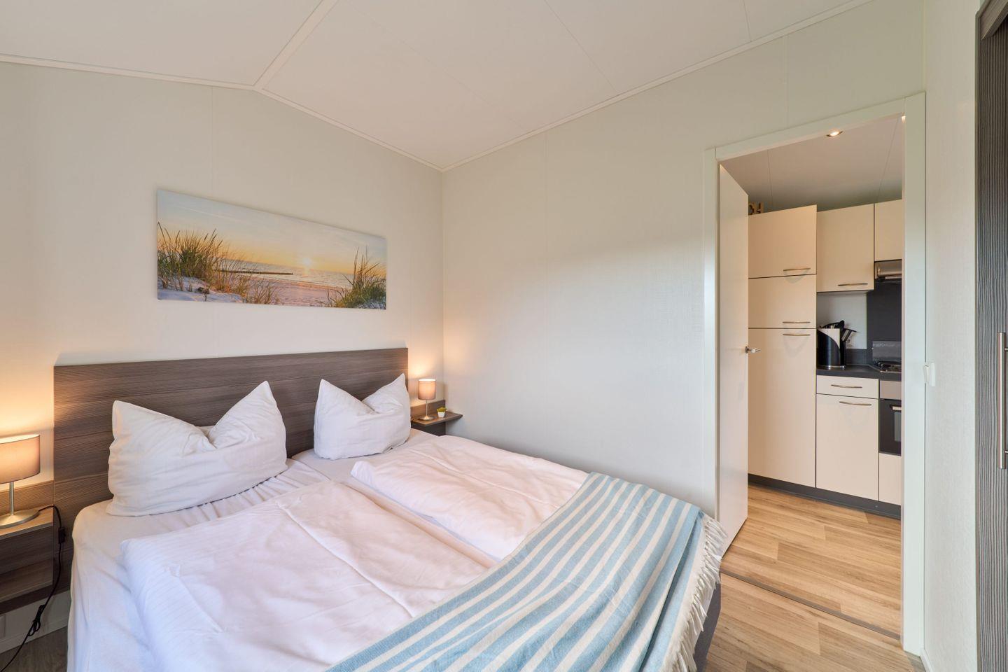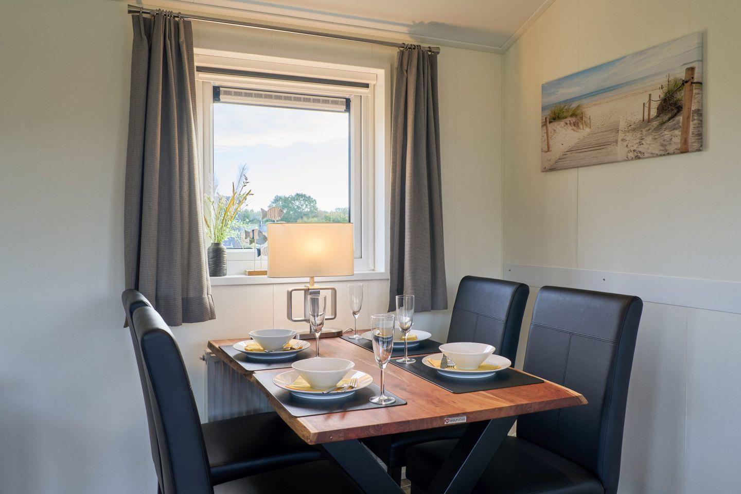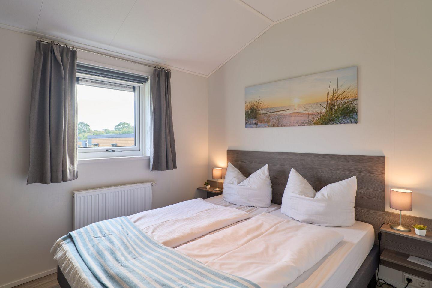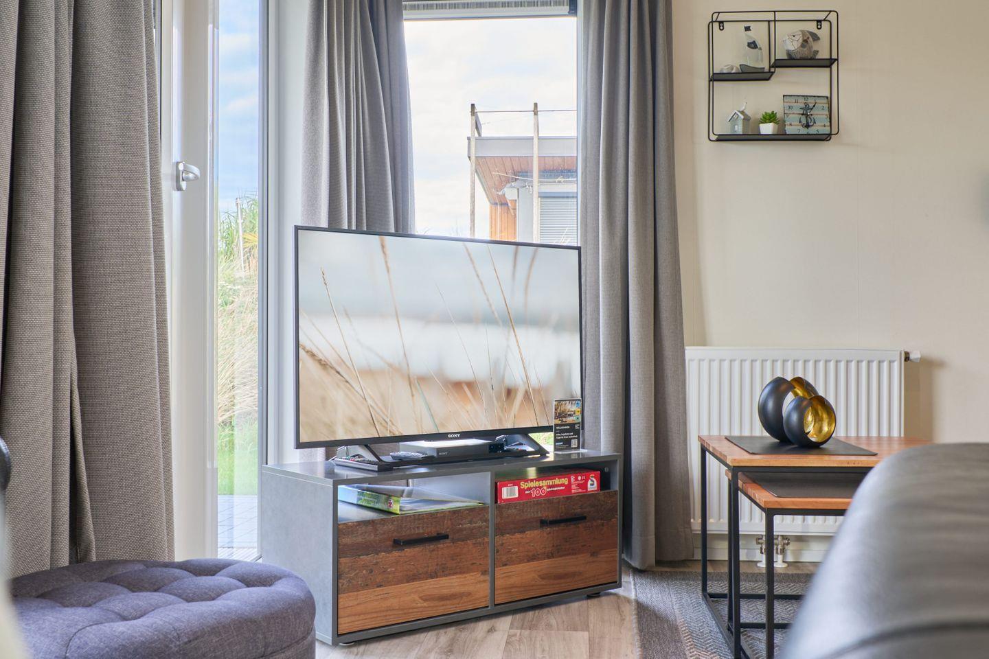 Das Chalet verfügt über drei Zimmer, darunter zwei separate Schlafzimmer mit insgesamt vier Schlafmöglichkeiten. Zwei der Schlafplätze sind speziell für Kinder vorgesehen und bieten Familien mit Kindern ausgezeichneten Komfort. Ein helles Wohnzimmer mit Sofaecke lädt zum Entspannen ein. Der offene Küchenbereich grenzt direkt an den Essbereich und das Wohnzimmer an und ist mit zahlreichen Annehmlichkeiten ausgestattet. Für die gemeinsame Zubereitung von Mahlzeiten stehen Ihnen ein Herd, Backofen, Kühlschrank mit Gefrierfach, Geschirrspüler, Kaffeemaschine, Wasserkocher, Toaster sowie sämtliche Küchenutensilien, Geschirr und Besteck zur Verfügung. Ebenso sind Geschirrhandtücher vorhanden. Ein moderner Esstisch bietet genug Platz für alle Gäste.