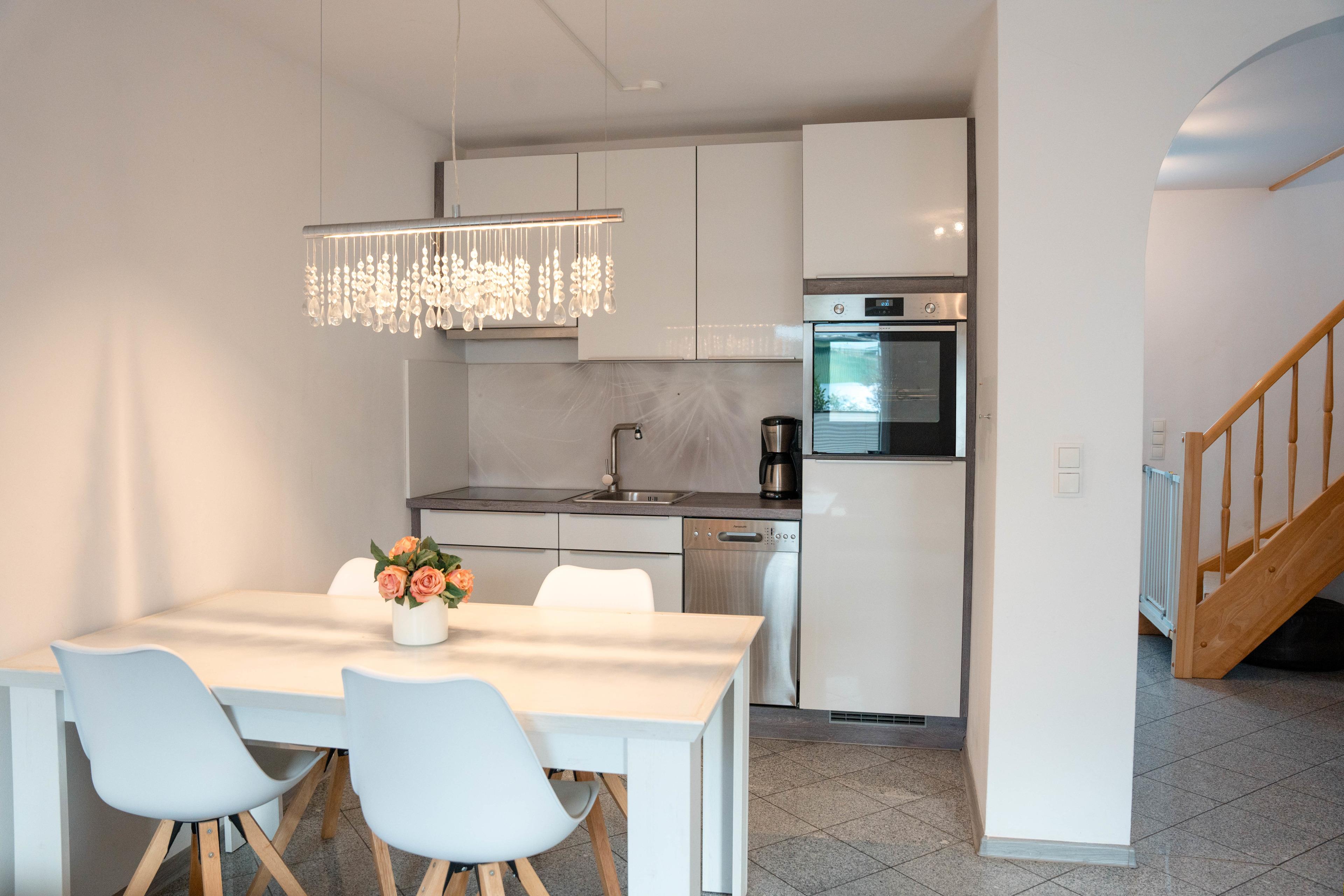Die zwei Schlafzimmer im Obergeschoss sorgen für Privatsphäre, während der offene Wohnbereich mit angrenzender Küchenzeile und Essbereich ideal für gesellige Abende ist.