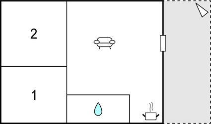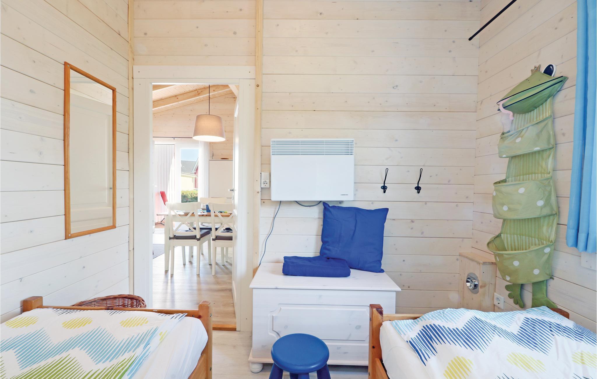 Trehuset er moderne og koselig innredet. Det er to separate soverom med en dobbeltseng og to enkeltsenger. Det er ytterligere en sovemulighet i stue-/spisestuen. Den lille kjøkkenkroken er fullt utstyrt og gir deg alle bekvemmeligheter for ferien. Den åpne terrassen foran huset innbyr til felles måltider, og det er en grill til din disposisjon. Her kan du slappe av og nyte tiden sammen med familien.