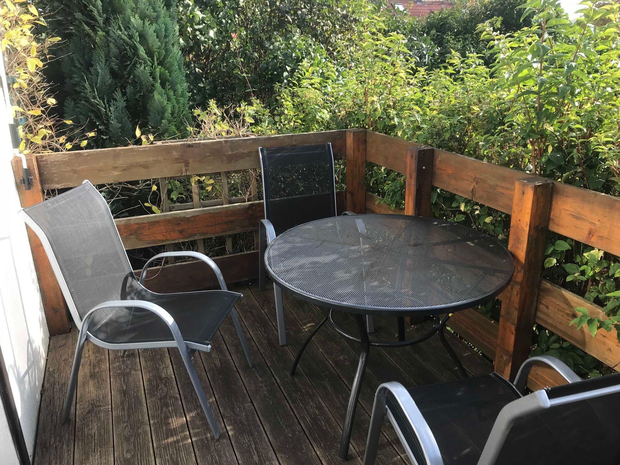 Die Wohnung ist 40 qm groß und besteht aus Wohnraum mit offener Küche, Bad mit Dusche und Schlafraum mit Doppelbett. Zur Ausstattung gehören ebenso Terrasse mit Gartenmöbeln, Liegewiese und Grillplatz. Ihren PKW und Fahrräder können Sie unter dem Carport abstellen.