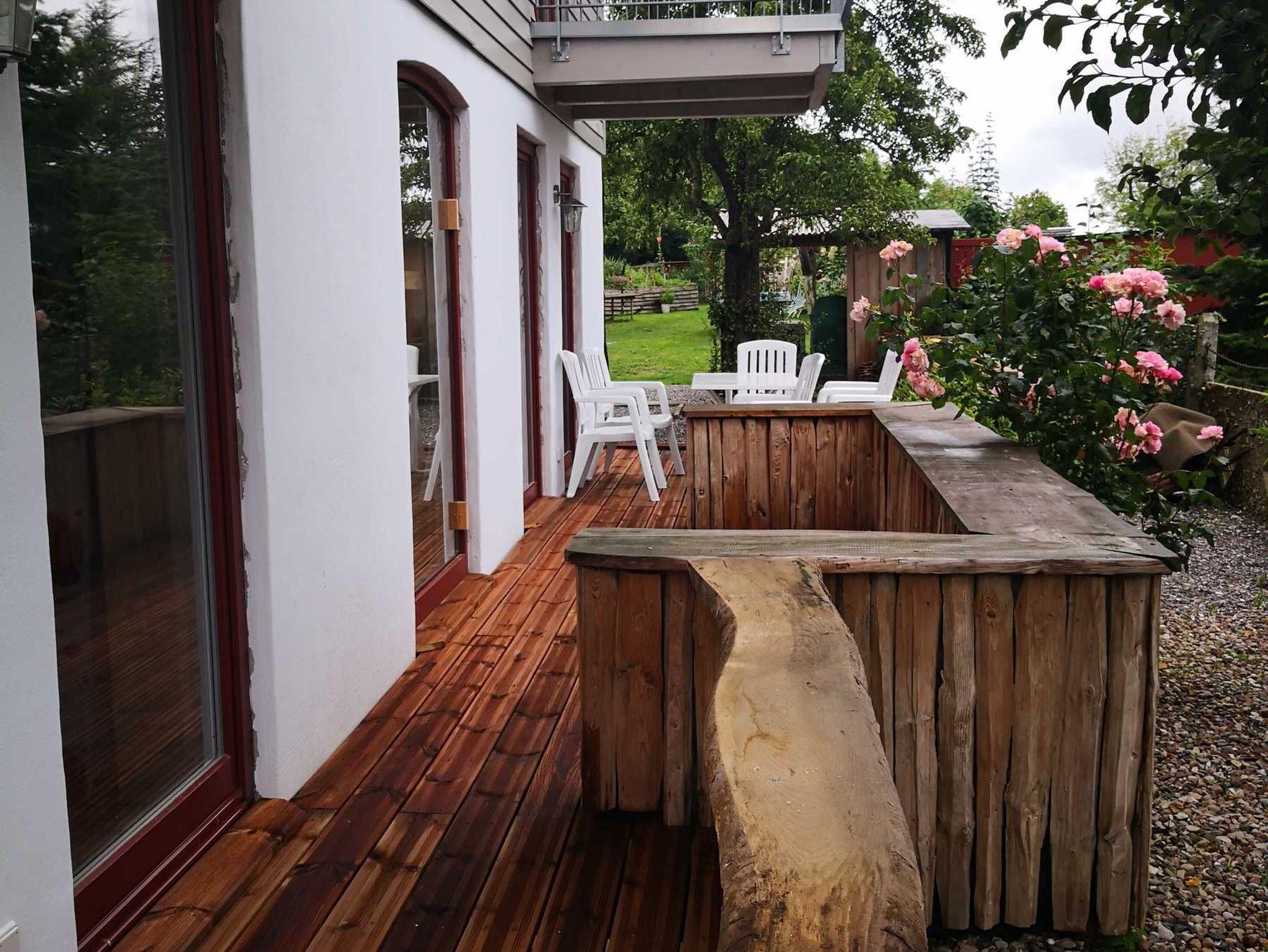 Unser großer Garten lockt mit altem Obstbaumbestand und einem Hochbeet-Kräutergarten.