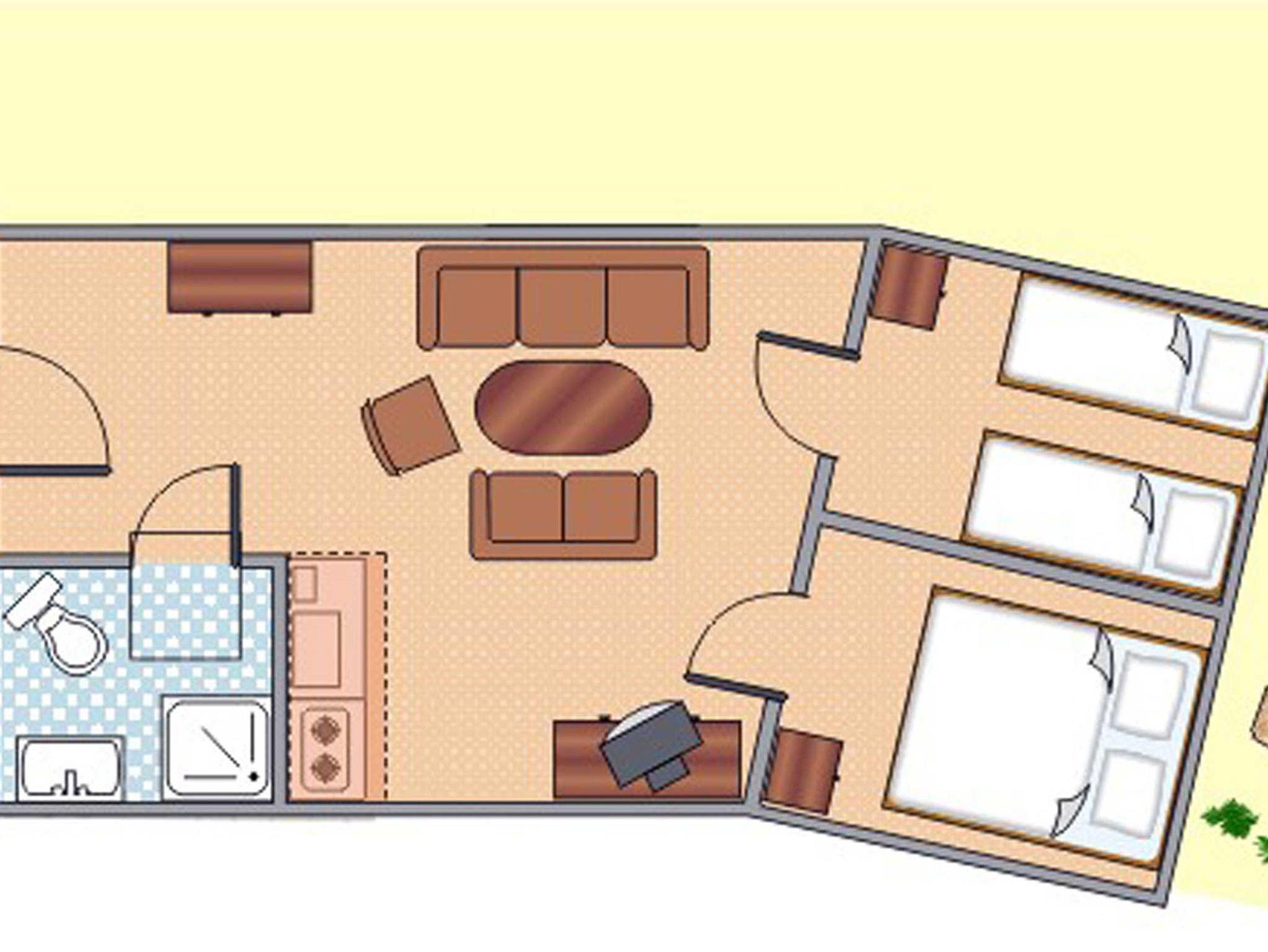 Mit einer Größe von ca. 40 qm finden Sie hier Platz mit bis zu 4 Personen. Das Ferienhaus ist komplett ausgestattet, im Wohnzimmer mit Sat-TV, gemütlicher Sitzecke, einem Bad mit Dusche und WC, einer Mini-Küche und 2 separaten Schlafzimmern, davon eines mit 1 Doppelbett und das andere mit 2 Einzelbetten. Bettwäsche wird zur Verfügung gestellt, Handtücher müssen selbst mit gebracht werden. Zum Ferienhaus gehört eine eigene Terrasse mit Gartenmöbeln und ein eigener Grillplatz hinter dem Haus. Ebenso ist für die Feriengäste natürlich auch ein eigener PKW-Stellplatz vorhanden. Einkaufsmöglichkeiten befinden sich in ca. 300 m Nähe - Friseur und verschiedene Gaststätten sind ebenfalls in unmittelbarer Nähe vorhanden. Zum Sandstrand der Schaabe sind es von hier aus nur ca. 10 Autominuten - wer nicht mit dem Auto kommt, kann selbstverständlich auch mit dem Bus oder dem Fahrrad fahren.