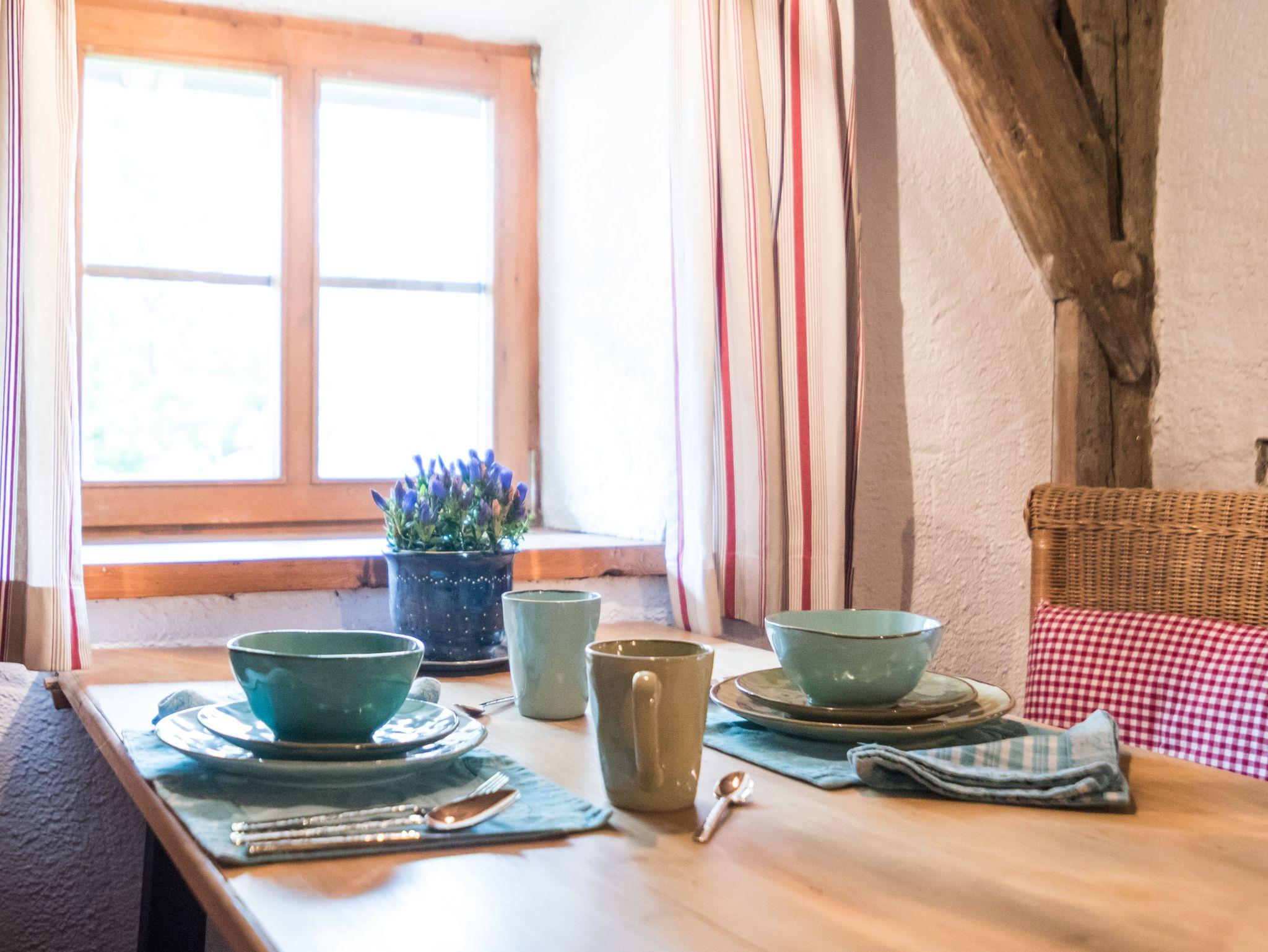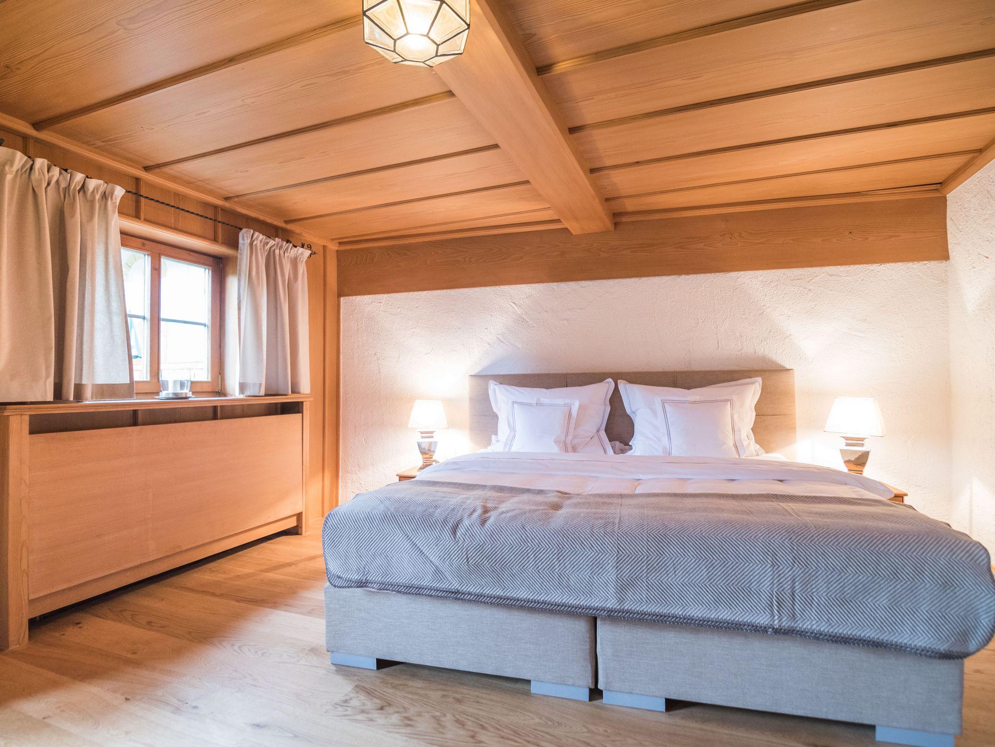 befindet sich im ersten Obergeschoss der hinteren Hälfte des Schusterhäusls. Es verfügt über einen Balkon mit Blick zum Garten, ein Schlafzimmer mit King-Size Bett. Ein luxuriöses Bad in Naturstein inkl. Föhn, Glasdusche und Handtüchern. Darüber hinaus stehen Ihnen eine neue, vollausgestattete Küche mit Altholzdecke inklusive Anrichte und Esstisch zur Verfügung. Das sehr geräumige Wohnzimmer ist teilweise holzvertäfelt. Ein Kachelofen, SMART-TV und einer großen Eckcouch sind hier einige Highlights. Auf Wunsch können wir Ihnen hier noch ein komfortables Bett 180 x 180 cm für 2 weitere Gäste anbieten.