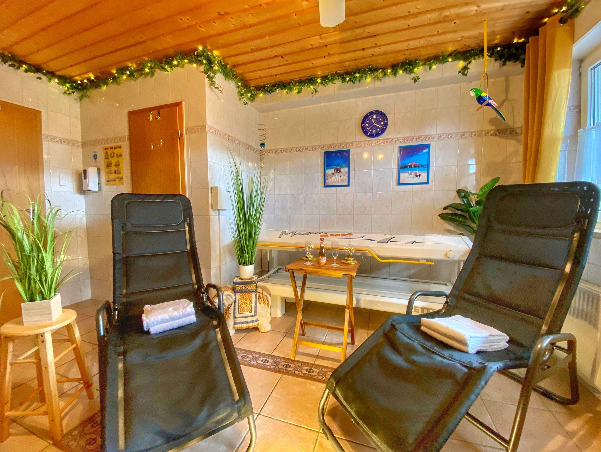Die Ferienwohnungen im Haus Jasmin verfügen über Kabel-TV, Radio, CD-Player und Telefon mit eigenem Anschluss und W-LAN. Parkplätze stehen am Haus zur Verfügung. Außerdem stehen Sauna, Solarium, Waschmaschine und Trockner zur Verfügung.
