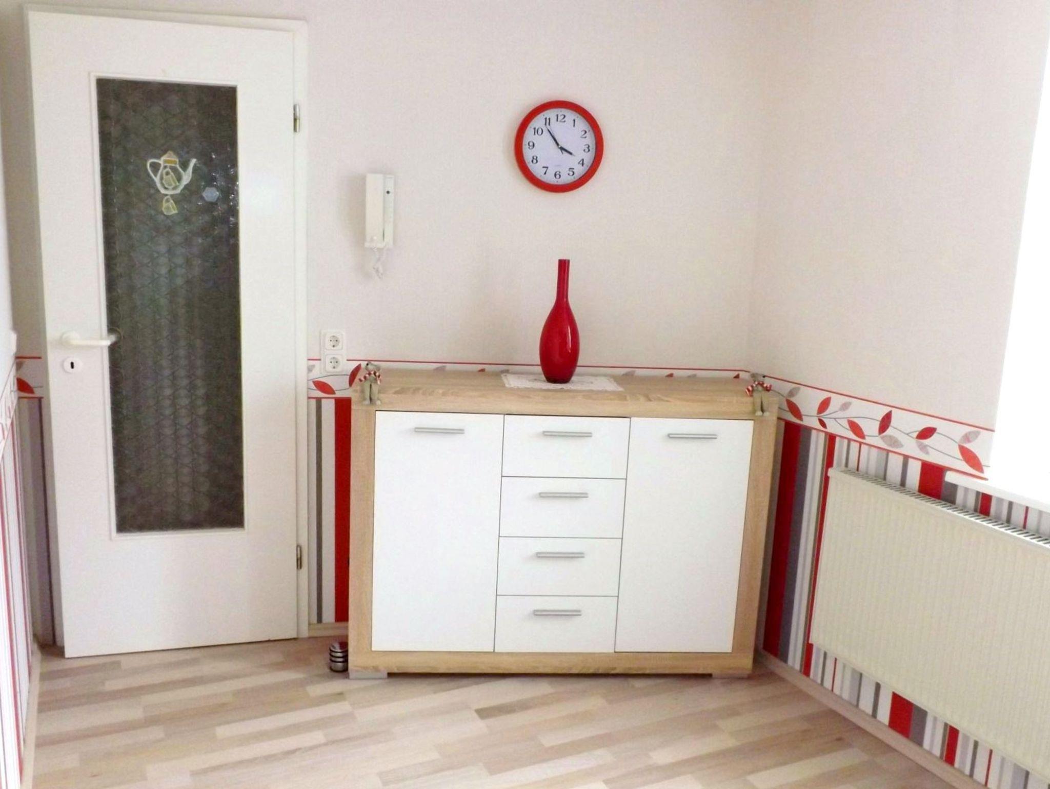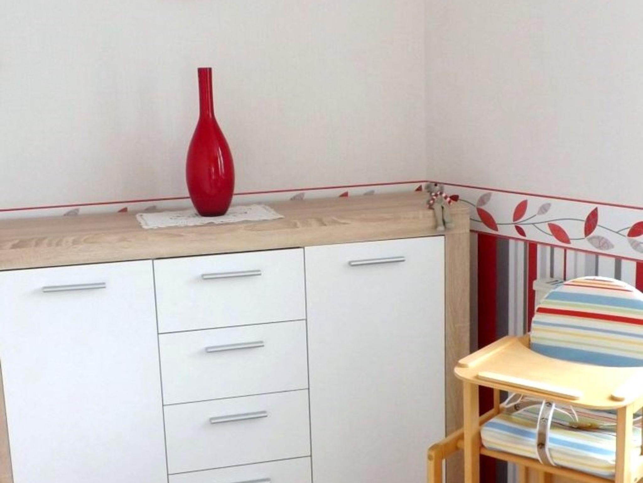 Auch ein Sideboard und ein Kinderhochstuhl gehören hier zur Einrichtung.