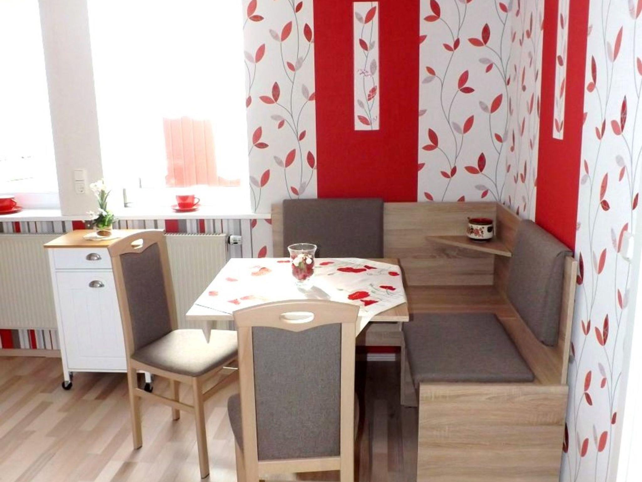 In der Küche lädt eine gemütliche Essecke zum Verweilen ein. Egal, ob zu den Mahlzeiten oder für einen gemütlichen Spieleabend.