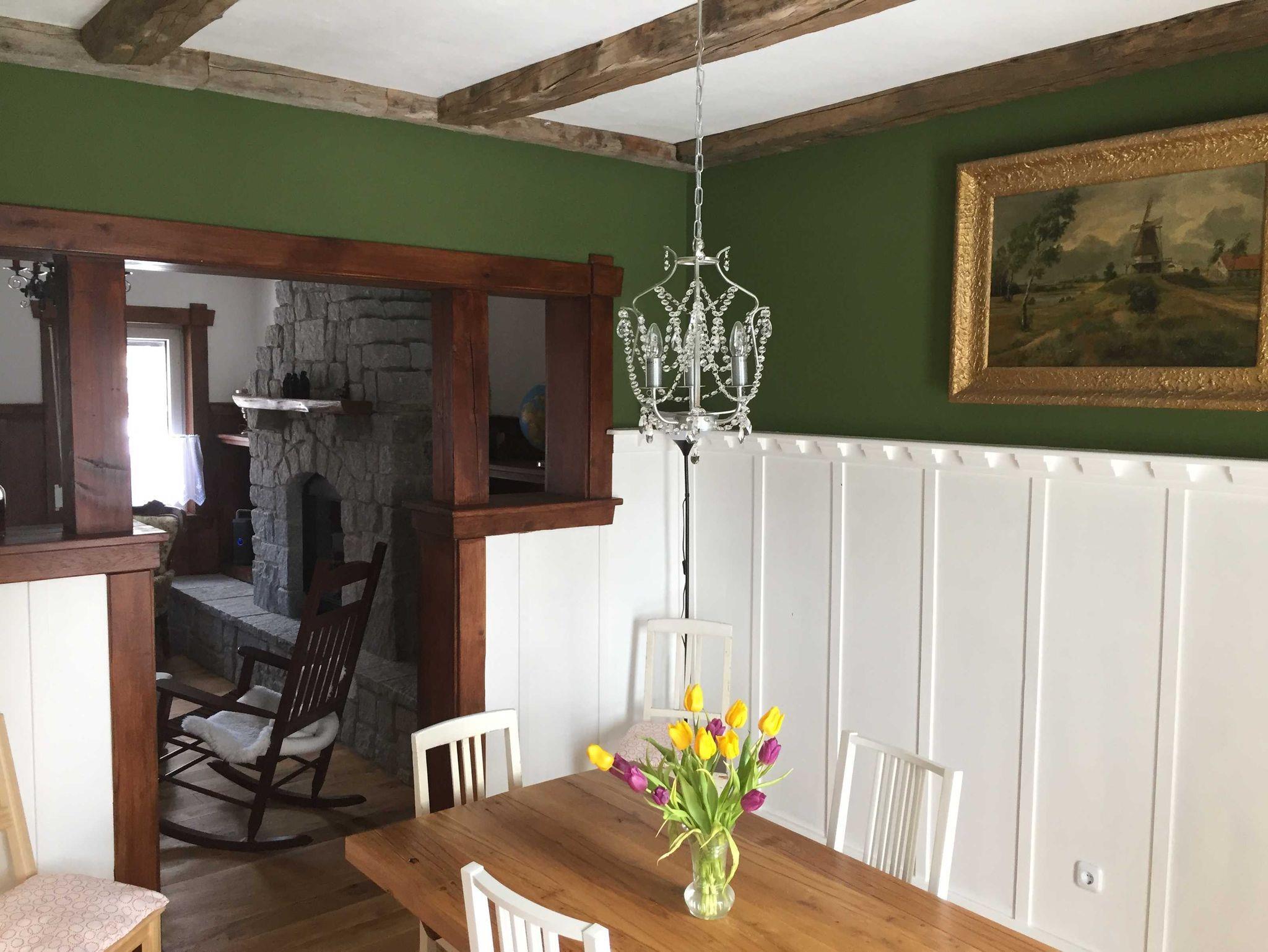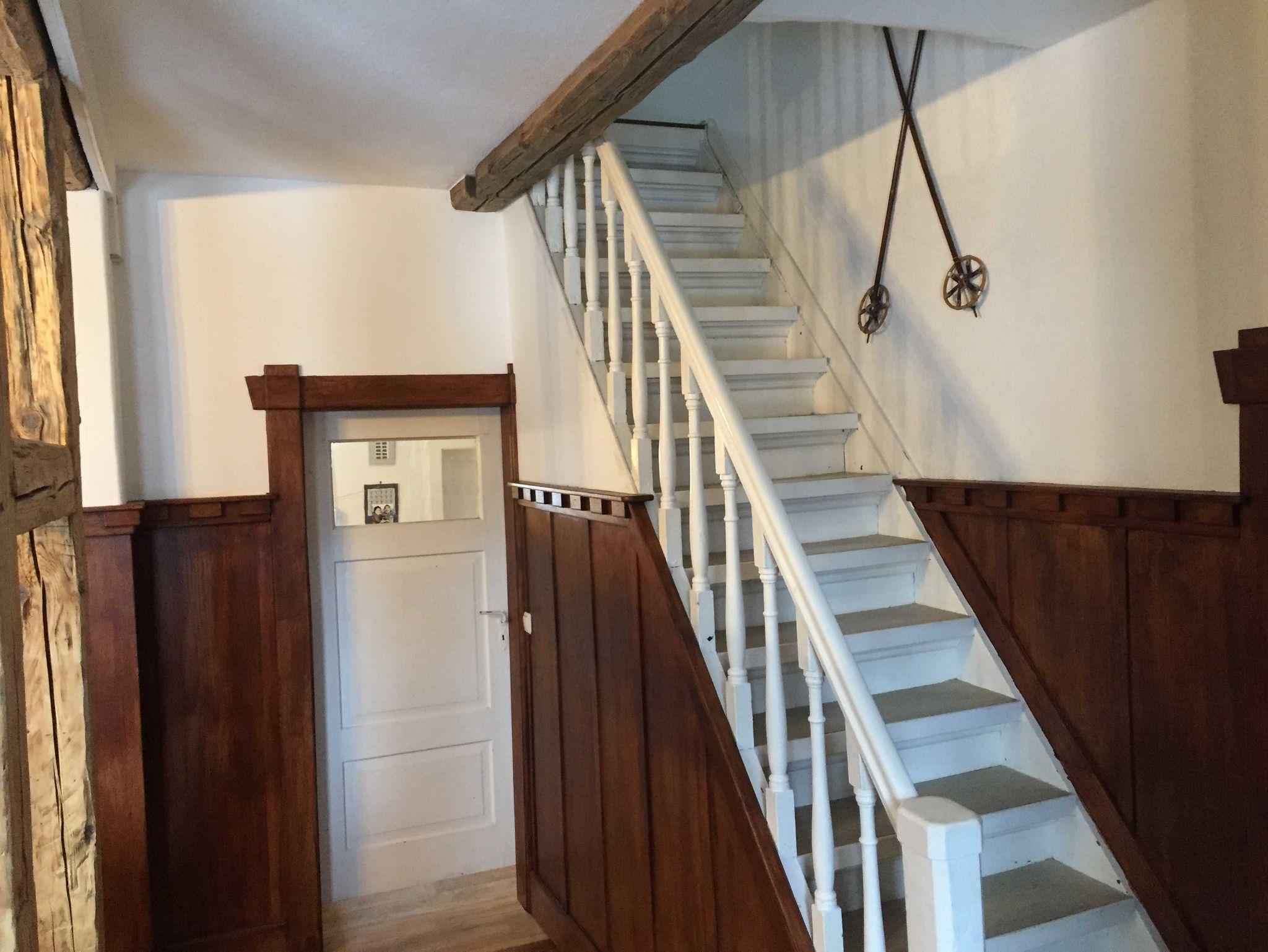 Renovated historic house with fantastic view into nature. perfect for cosy winter eves in front of the (gas) fire place or during the warmer months for a BBQ on the terrace in the small garden. With 4 sleeping rooms and a historically renovated dining and living area there is enough space for family and friends.