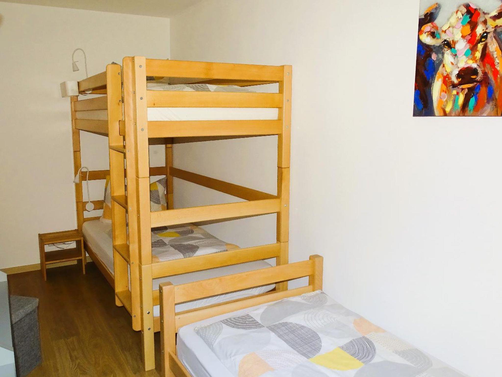 - 1 Kinderschlafzimmer mit insgesamt 3 Einzelbetten (inkl. 1 Hochbett)
