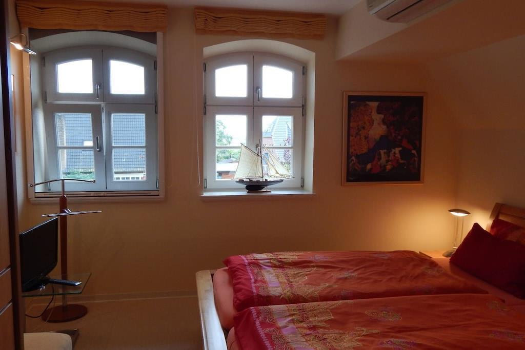 Herzlich willkommen in dieser luxuriösen Ferienwohnung! Die herrlich luxuriöse Ausstattung der Ferienwohnung lässt wirklich keine Wünsche offen. Exklusive Möbel, Accessoires und allerlei Annehmlichkeiten sind hier wirklich stilvoll aufeinander abgestimmt. Ein hochwertiges Badezimmer sowie ein zusätzliches Gäste-WC in Granitausstattung sind auch vorhanden. Das Hauptbadezimmer ist mit Dusche, Doppelwaschbecken, Handtuchwärmer mit Handtüchern und Bademänteln ausgestattet. Klimatisierte Schlafzimmer. Die geräumige Küche hat alles was man zu einem perfekten Kochen benötigt. Selbstverständlich befindet sich im gemütlichen Wohnzimmer Telefon, TV und DVD-Player mit Stereoanlage. Der eigene überdachte Balkon lädt zum Verweilen ein. Das gesamte Appartement ist ebenerdig mit Fußbodenheizung. Genießen sie die Ruhe in unserem Wellnessbereich mit finnischer Sauna und Wärmekabine im EG des Hauses.