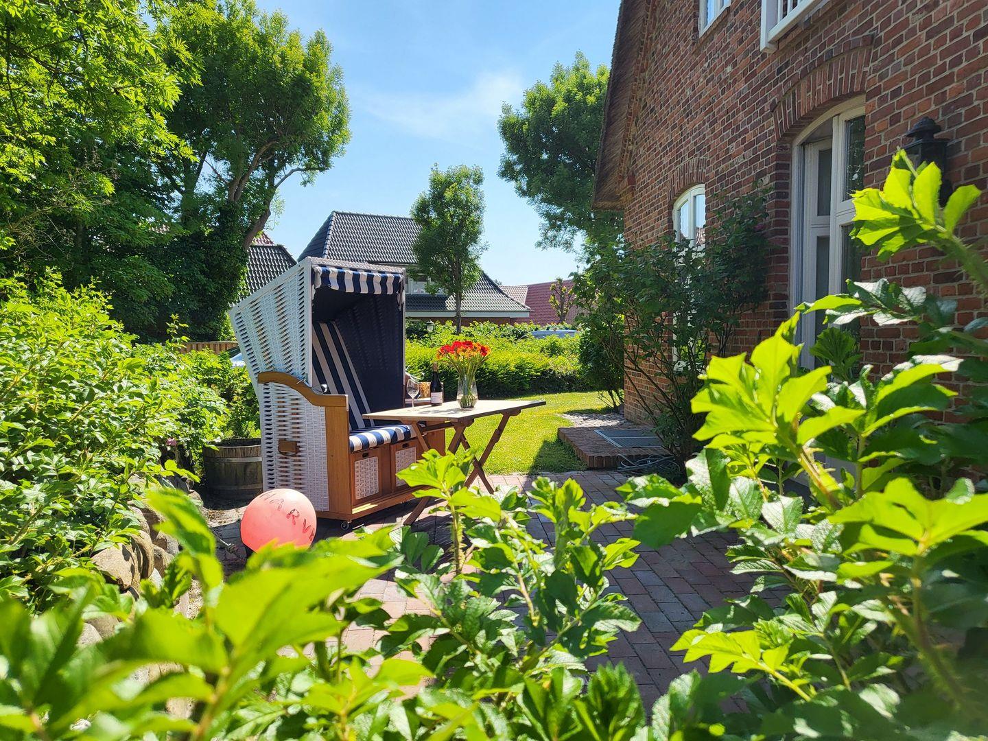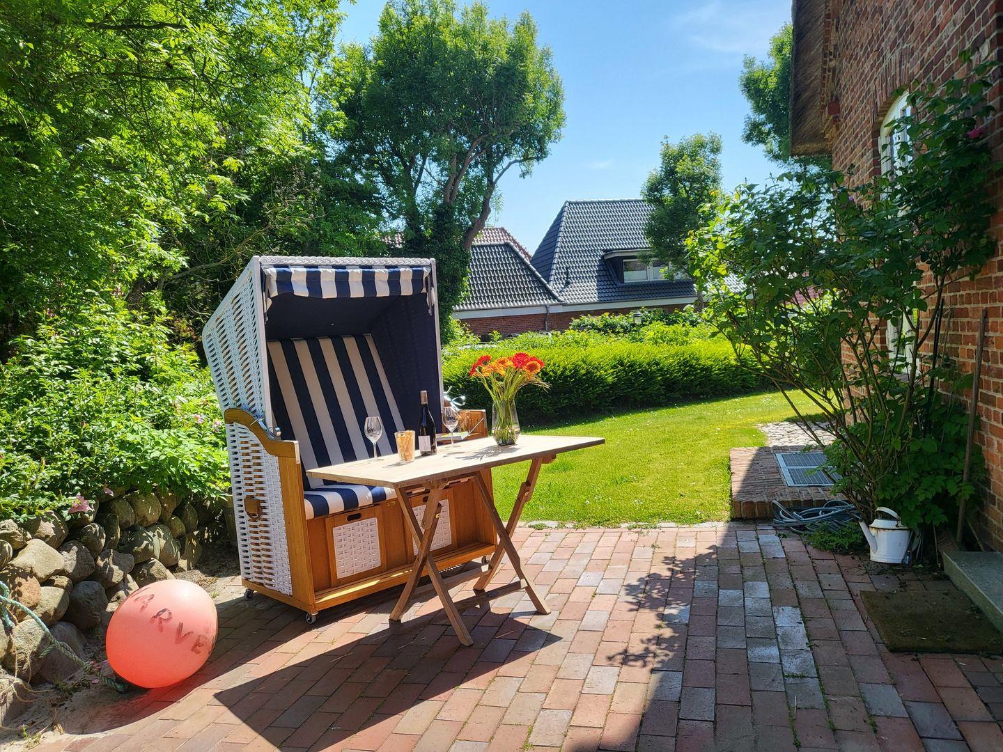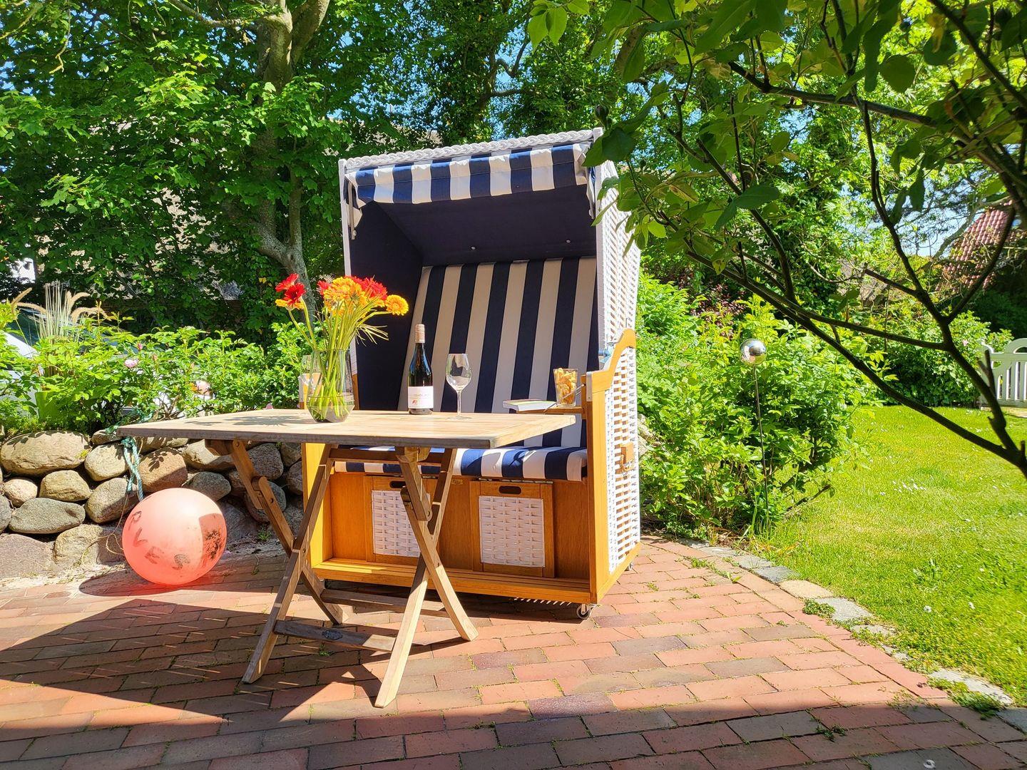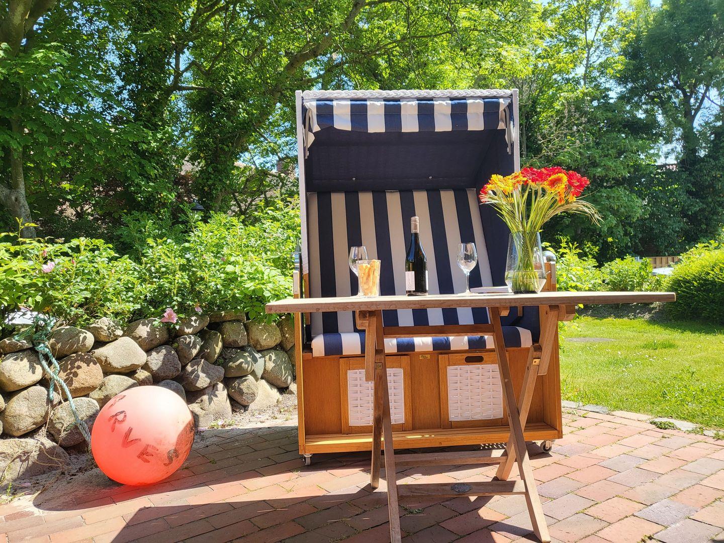 Zwei Personen, auch gerne zusätzlich mit Kleinkind bis 3 Jahre, genießen auf 37m² ein modernes Ambiente, samt idyllischer Terrasse mit typisch norddeutschem Strandkorb. Die Ferienwohnung liegt im ruhigen Teil des Hauses und ist zum Garten ausgerichtet und wirkt dank Echtholzboden und angenehm hoher Decken hell und geräumig.