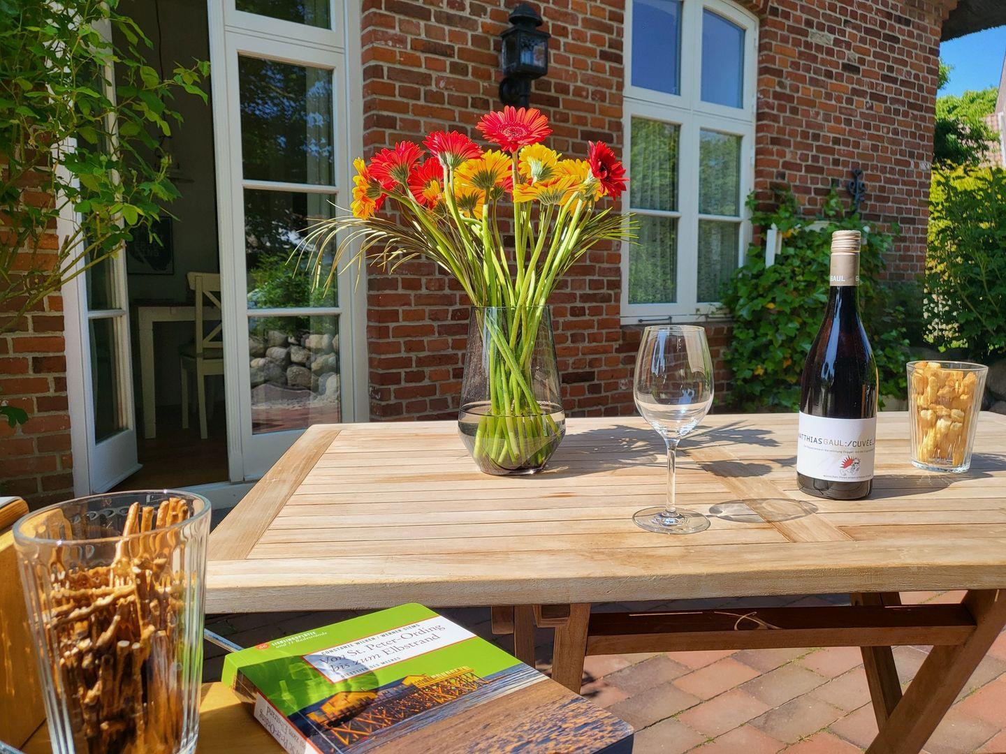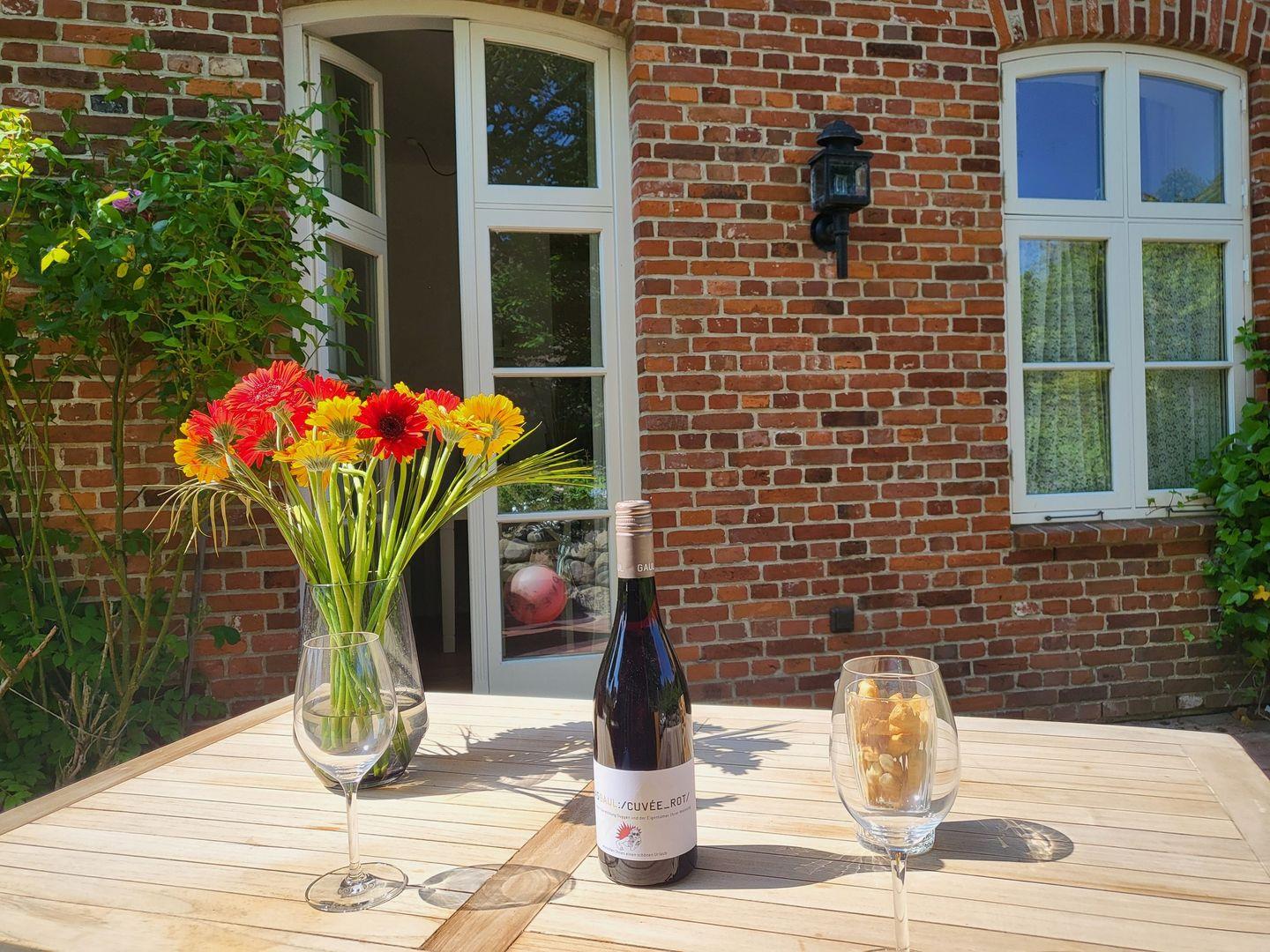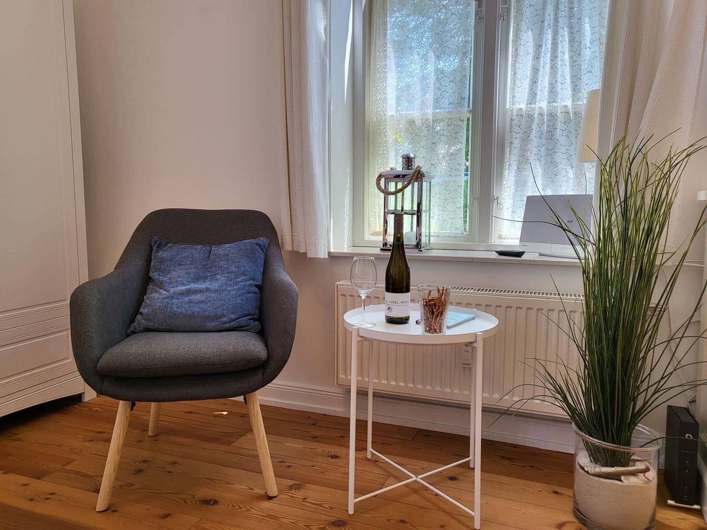 Zwei Personen, auch gerne zusätzlich mit Kleinkind bis 3 Jahre, genießen auf 37m² ein modernes Ambiente, samt idyllischer Terrasse mit typisch norddeutschem Strandkorb. Die Ferienwohnung liegt im ruhigen Teil des Hauses und ist zum Garten ausgerichtet und wirkt dank Echtholzboden und angenehm hoher Decken hell und geräumig.