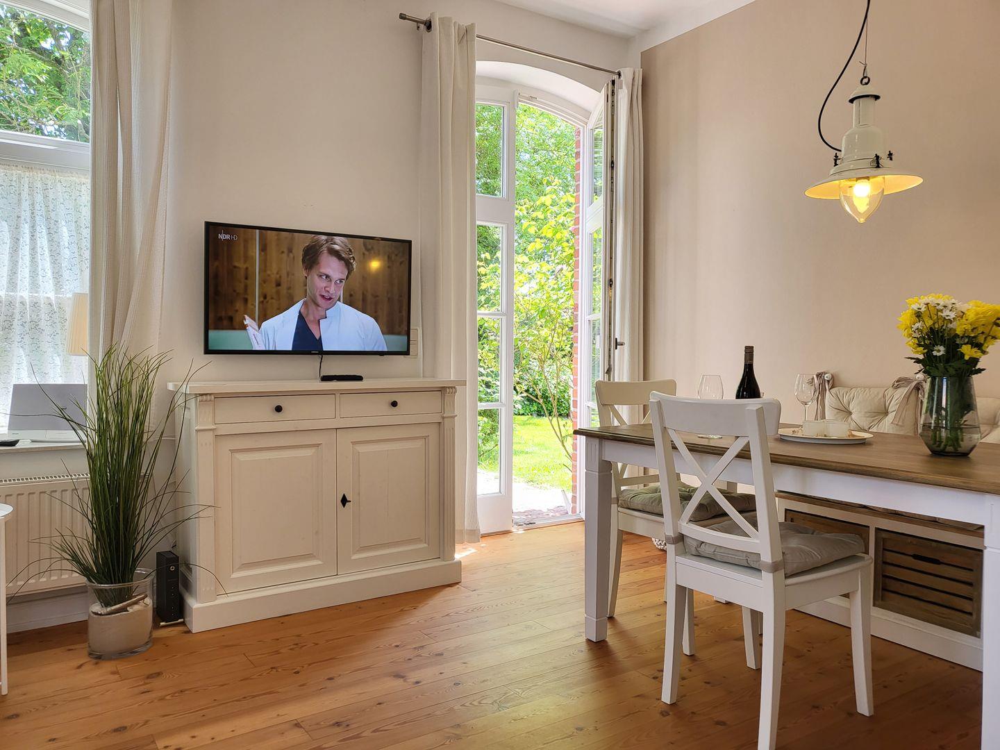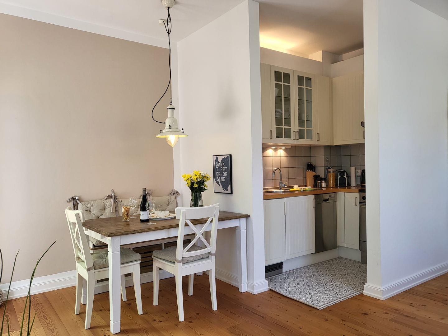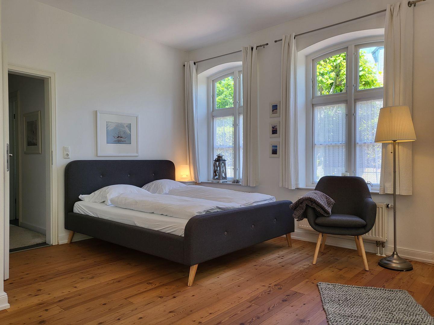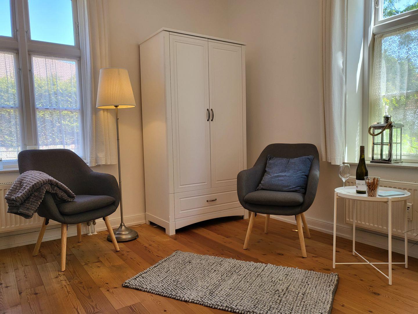 Zwei Personen, auch gerne zusätzlich mit Kleinkind bis 3 Jahre, genießen auf 37m² ein modernes Ambiente, samt idyllischer Terrasse mit typisch norddeutschem Strandkorb. Die Ferienwohnung liegt im ruhigen Teil des Hauses und ist zum Garten ausgerichtet und wirkt dank Echtholzboden und angenehm hoher Decken hell und geräumig.
