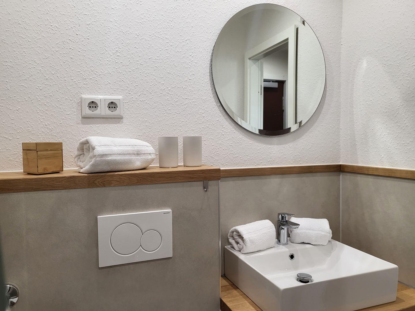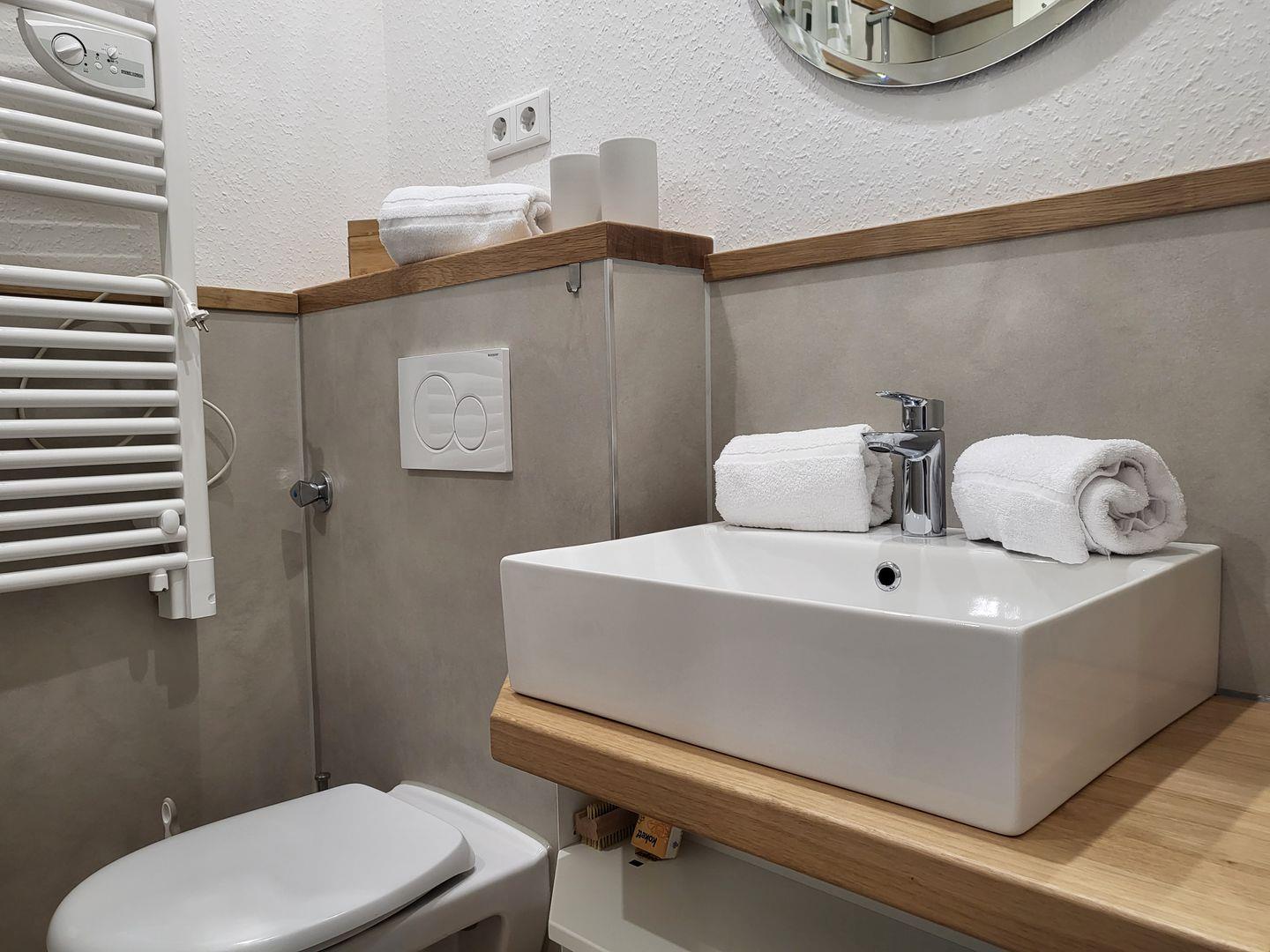 3 Zimmer, Balkon, 2 Schlafzimmer, eines mit Doppelbett, eines mit Einzelbett, Wohnraum mit Küchenzeile, Duschbad mit WC, kl. Flur, Nichtraucher, Infarotheizung, keine Tierhaltung, PKW-Stellplatz auf dem Grundstück, Wohnung über Eingang am Nebengebäude barrierefrei über den Aufzug erreichbar,Tenninsplatz