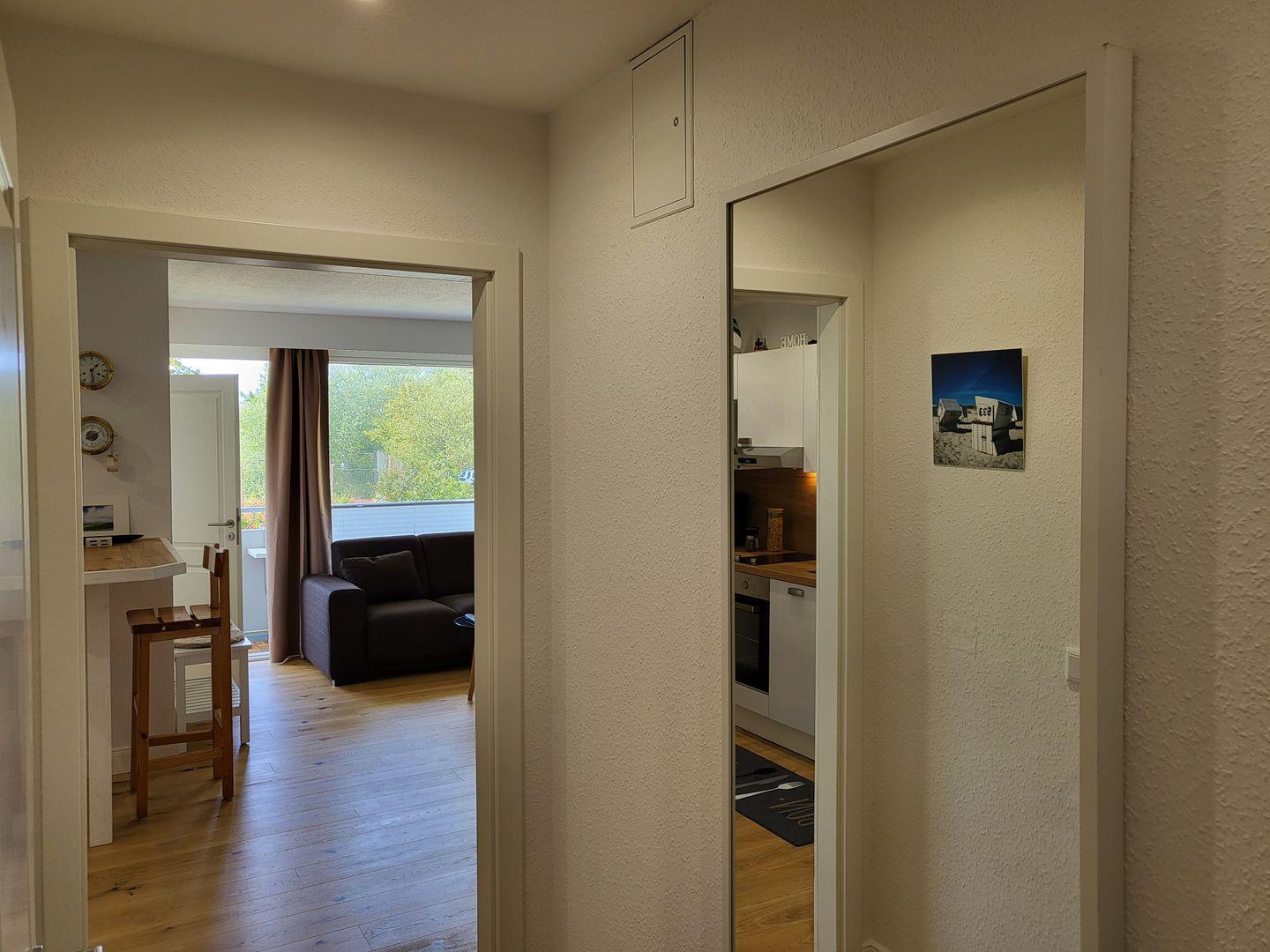 Ein Highlight der Wohnung ist der überdachte Balkon (Ausrichtung Nord-West), auf dem Sie die frische Meeresbrise und den Blick in den Garten genießen können. Ideal, um bei einer Tasse Kaffee die Seele baumeln zu lassen oder den Tag mit einem Glas Wein ausklingen zu lassen. Die zentrale Lage der Ferienwohnung ermöglicht es Ihnen, die umliegenden Attraktionen und Freizeitmöglichkeiten leicht zu erreichen. Der nahegelegene Sandstrand ist ca. nur 1000 Meter entfernt und lädt zu langen Strandspaziergängen, Sonnenbaden und Beachvolleyball ein. Für die sportlich Aktiven gibt es zahlreiche Möglichkeiten wie Surfen, Radfahren oder Nordic Walking in der idyllischen Natur.