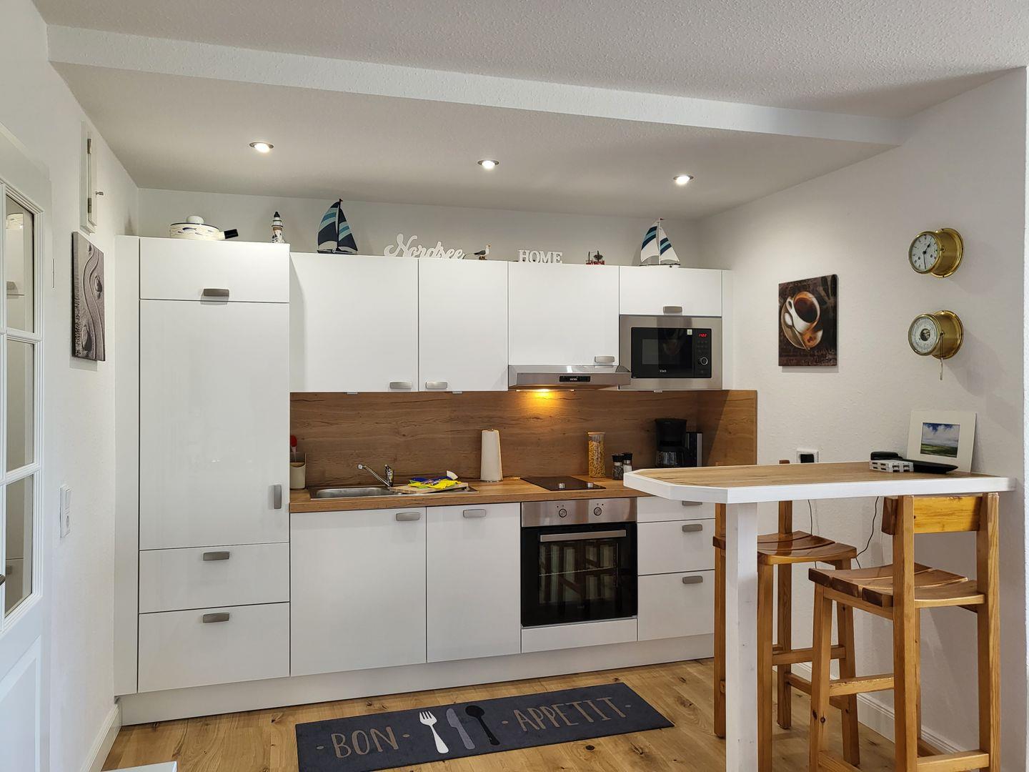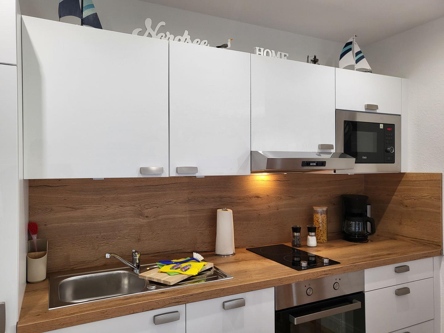 Die Wohnung ist modern und einladend eingerichtet. Das offene Wohnkonzept verbindet die voll ausgestattete Küche mit dem gemütlichen Essbereich und der einladenden Sofaecke. Hier können Sie entspannen, gesellige Abende verbringen oder gemeinsam eine Mahlzeit genießen. Die Küche lässt keine Wünsche offen: Sie ist mit einem Cerankochfeld, Kühlschrank, Geschirrspüler, Mikrowelle, Toaster und Kaffeemaschine ausgestattet, sodass Sie Ihre Lieblingsgerichte zubereiten können.
