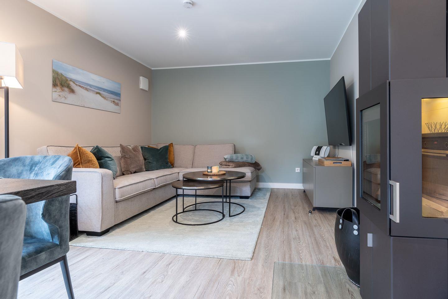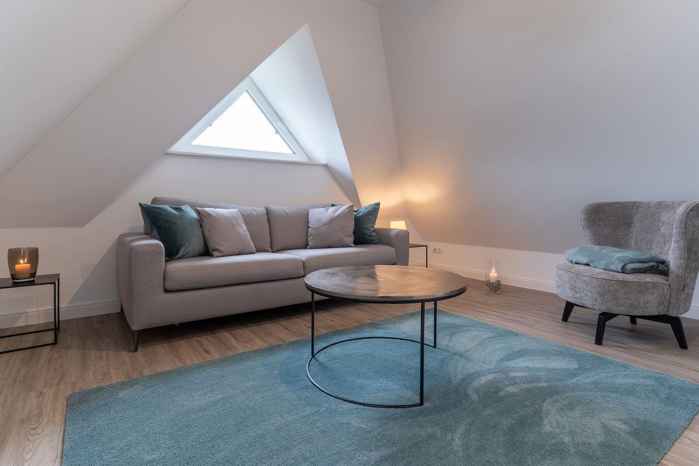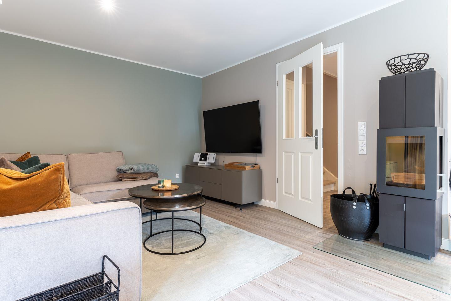 Im Erdgeschoss der Doppelhaushälfte Summerdiek 7 erwartet Sie das geräumige, komfortabel ausgestattete Wohnzimmer mit integrierter Küche.