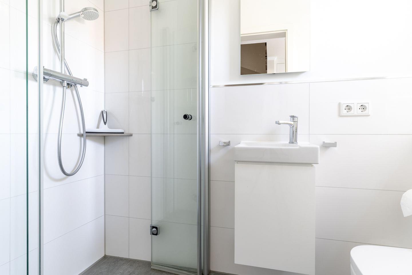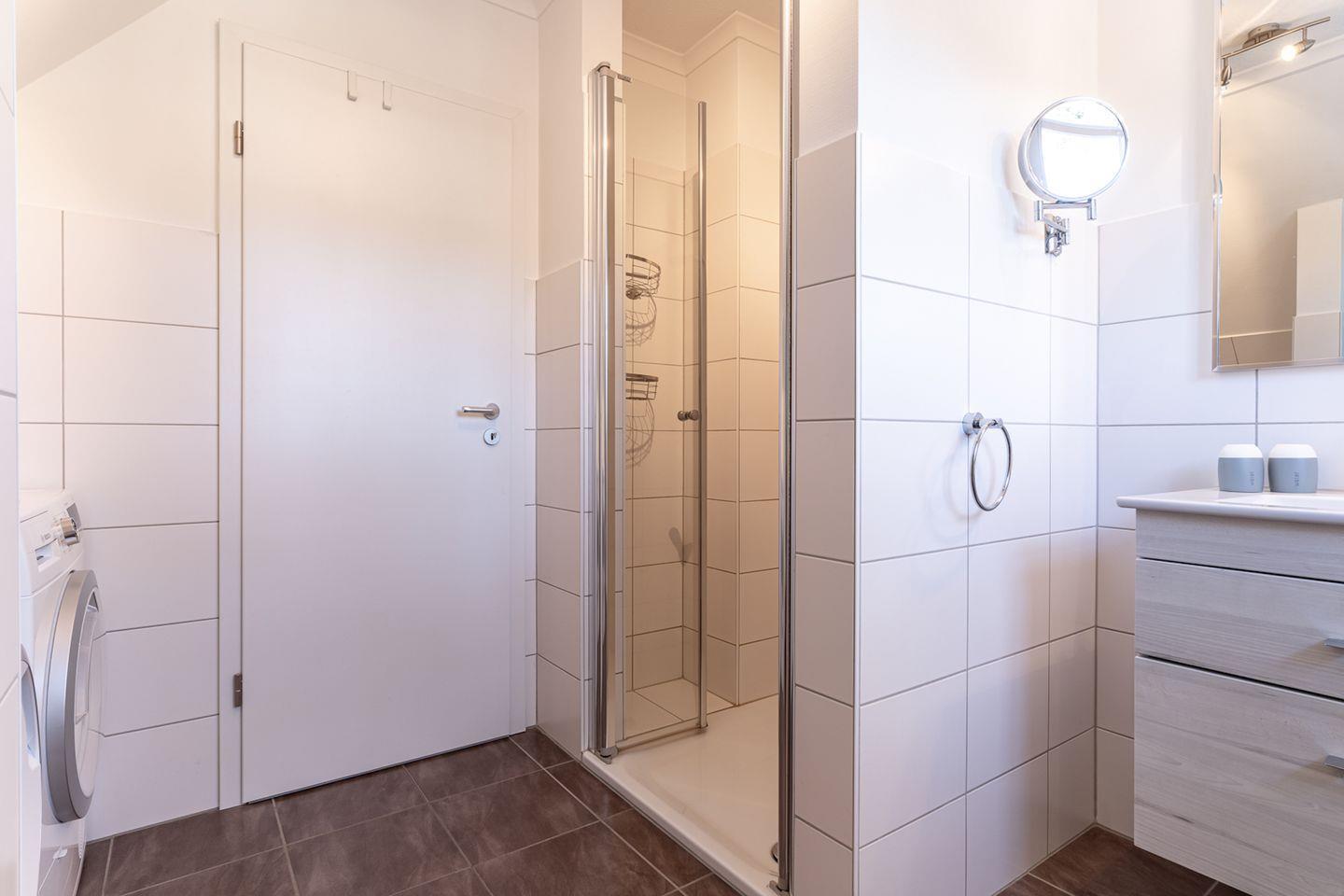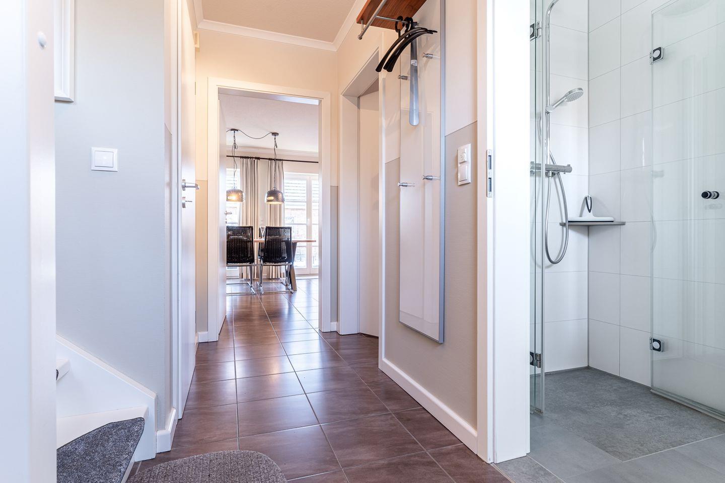 Im Erdgeschoss ist ebenso ein Flur mit Garderobe, ein Duschbad und ein Doppelschlafzimmer.