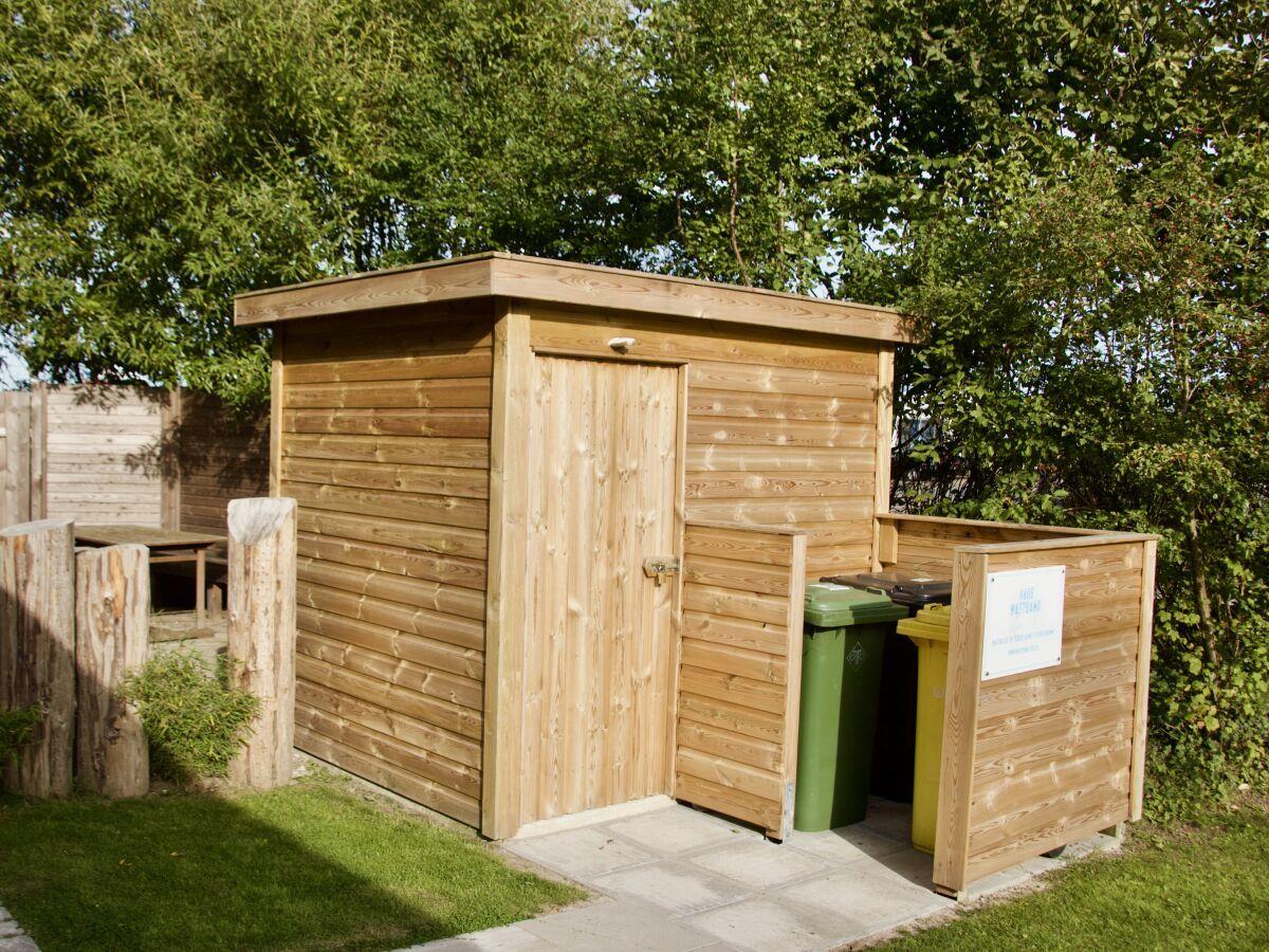 Im Außenbereich dient das Gartenhaus zur Verstauung von mitgebrachten oder geliehenen Fahrrädern.