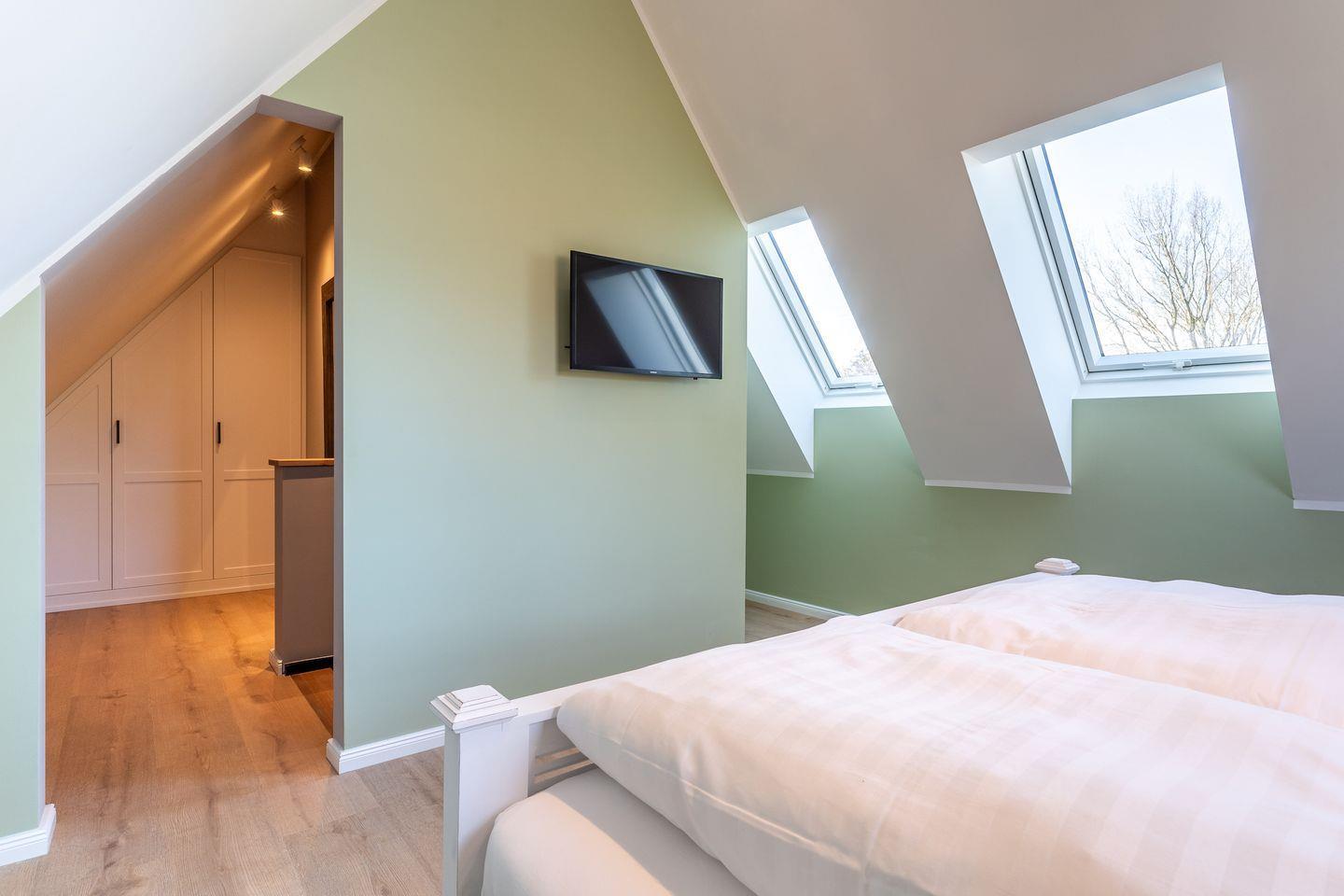 Über eine wunderschöne Treppe gelangt man in das Dachgeschoss, wo sich ein weiteres Schlafzimmer mit einem Doppelbett befindet. Max. 1 Haustier ist zugelassen.