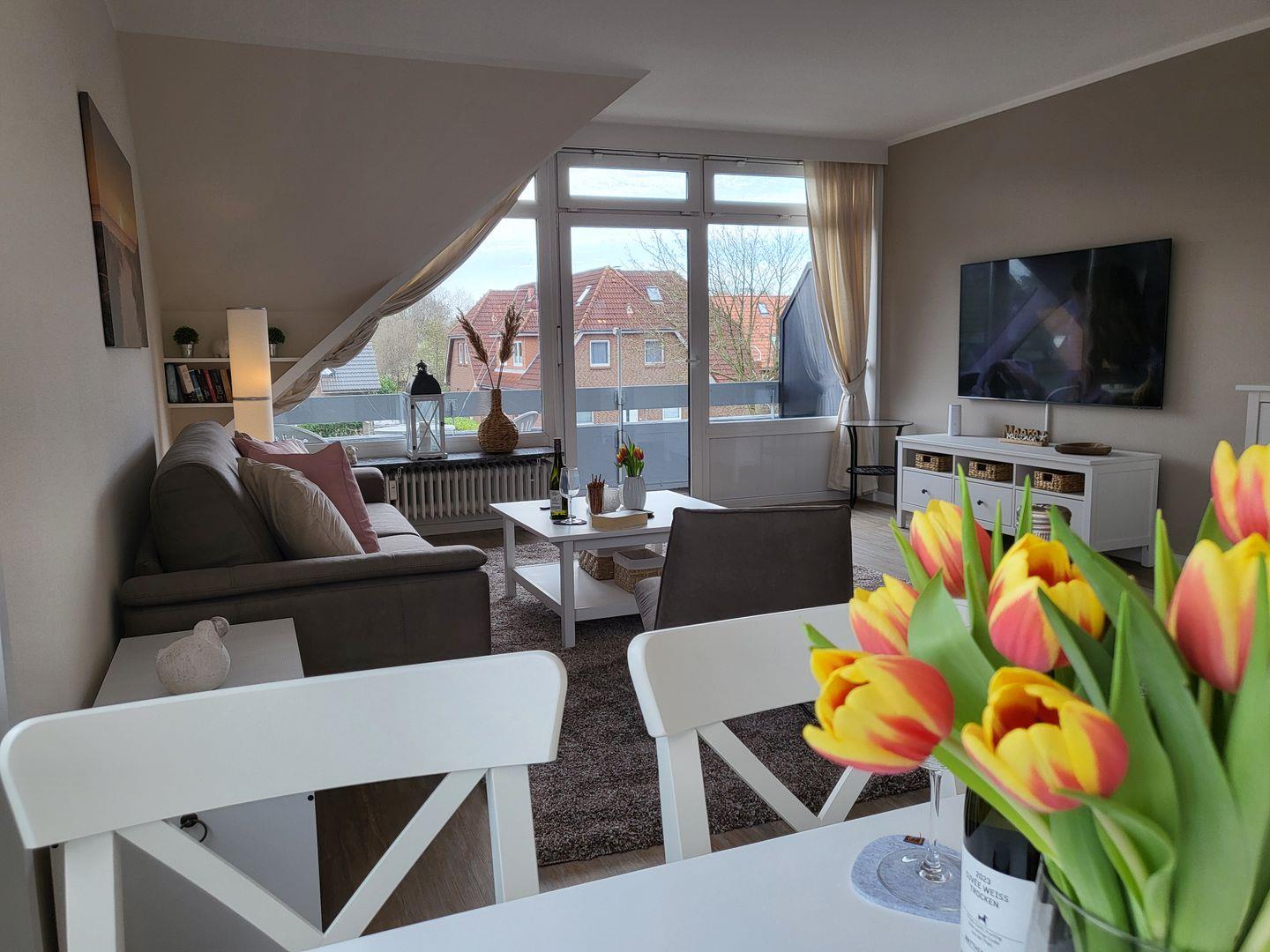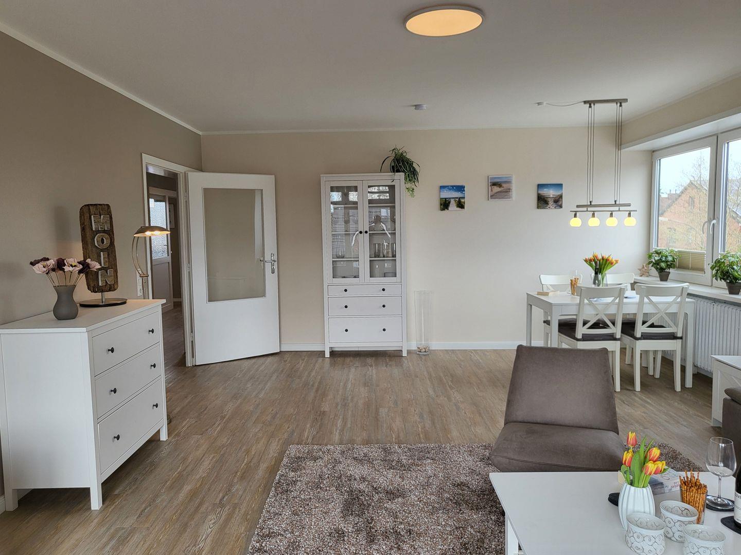 Die ca. 73 m² große, 2024 komplett renovierte, helle, zentral gelegene 2-Zimmer Ferienwohnung liegt in der 1. Etage und bietet bis zu 2 Personen Platz für einen wunderbaren Urlaub in St. Peter-Ording.