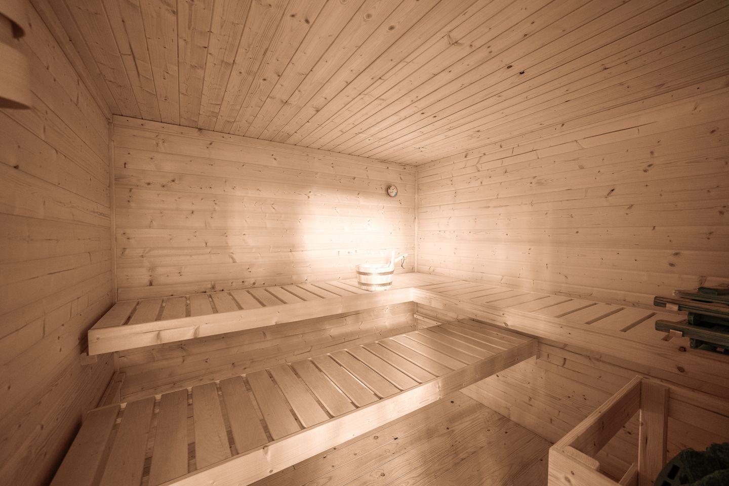 Das separate Schlafzimmer ist mit 2 Nachttischen, einem Kleiderschrank und einem Doppelbett (2,00 x 1,60 m) ausgestattet. Zudem bietet das Objekt ein anliegendes Arbeitszimmer zur offenen Küche, wo sich ein Schlafsofa für eine weitere Person (2,00 x 1,40) befindet. Das Badezimmer verfügt über eine Dusche, ein Waschbecken und ein WC. Zur Unterhaltung stehen zwei Sat-TVs Flachbildschirm im Wohnzimmer und einer in einem Schlafzimmer, ein Radio und kostenfreies WLAN zur Verfügung.
