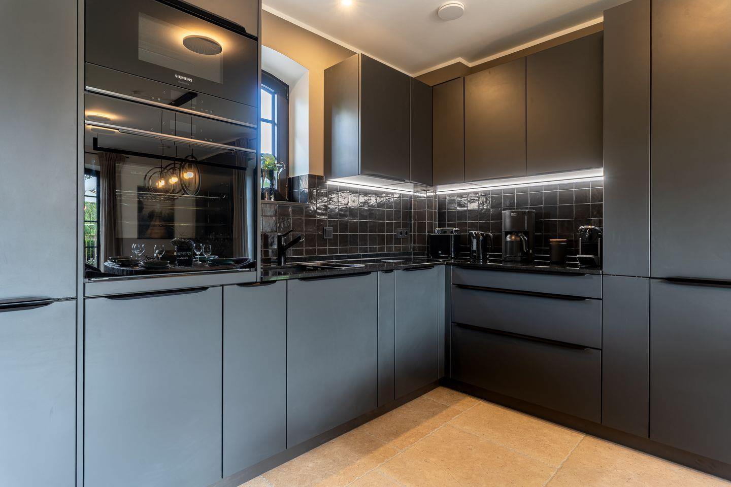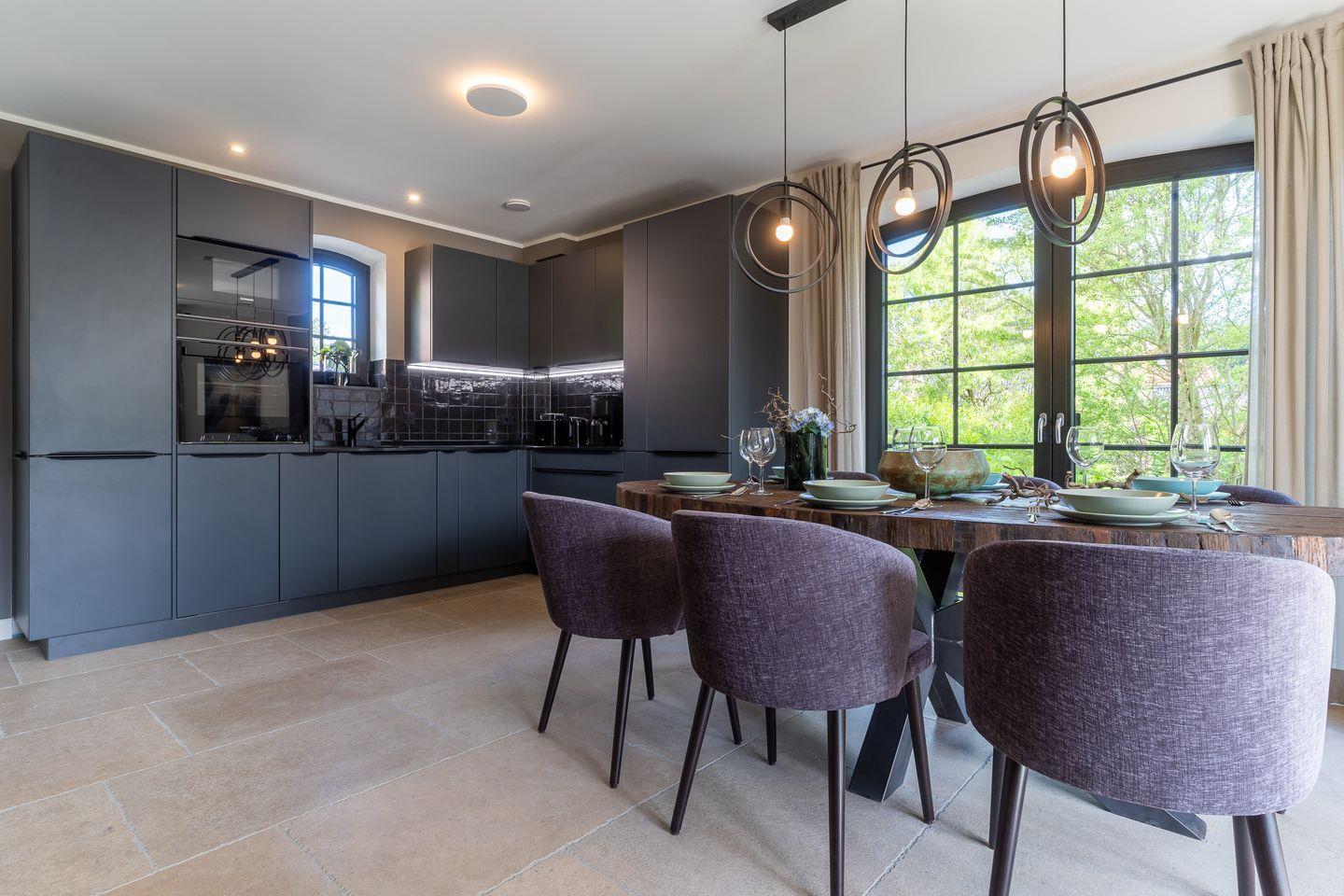 Die Küche verfügt über hochwertige Elektrogeräte, ein Induktions-Kochfeld und bietet genügend Platz zum gemeinsamen Kochen.