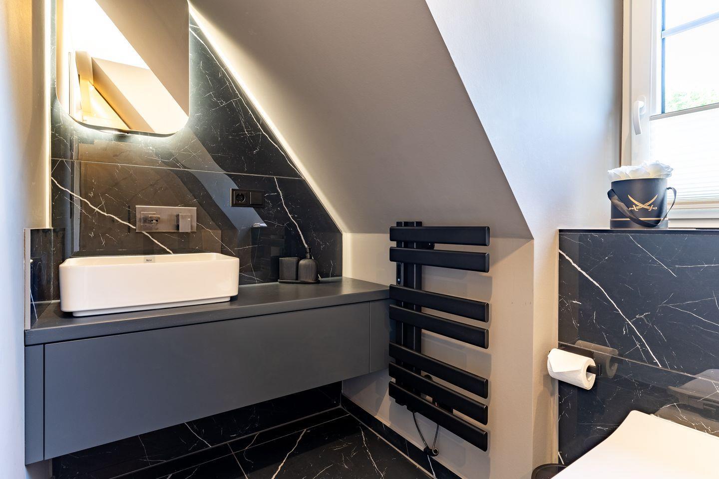 Ein vollausgestattetes Badezimmer im OG mit einer Dusche runden das hochwertige Hauskonzept ab und lassen keine Wünsche offen.