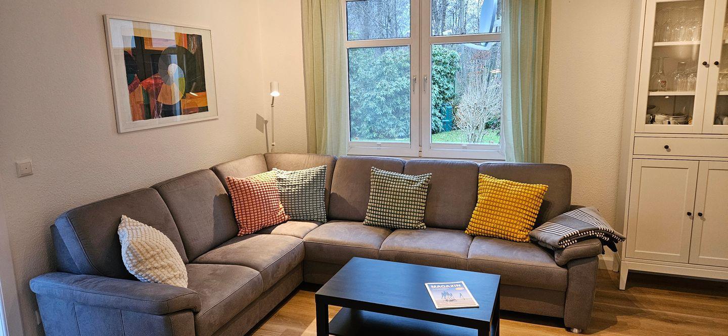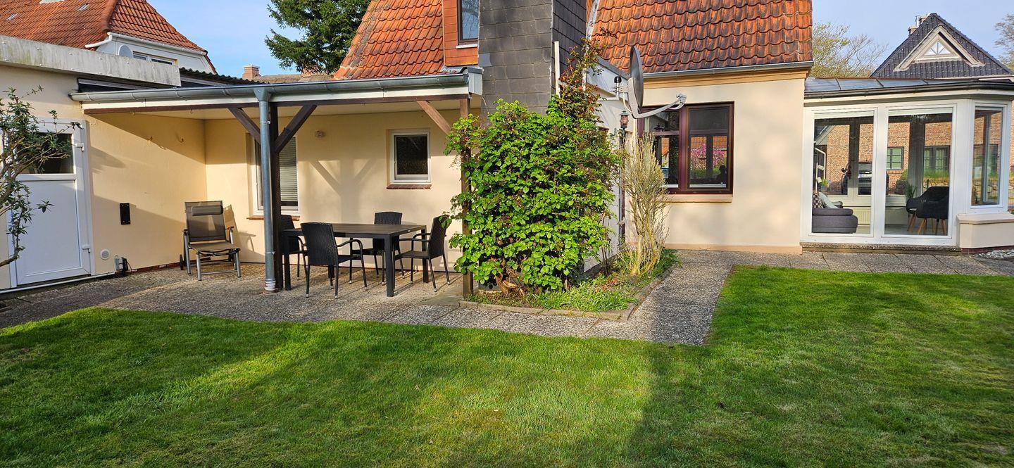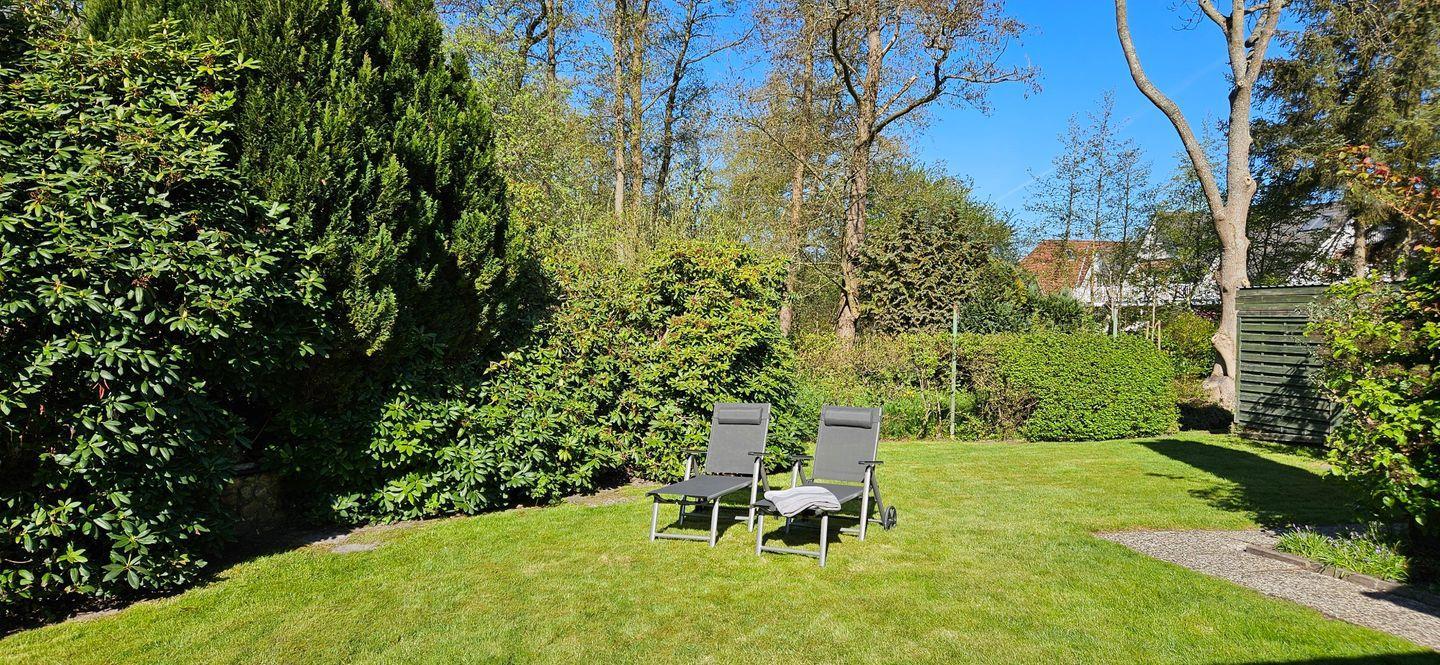 Der große Garten grenzt an ein Wäldchen und lädt zum Entspannen ein. Fahrradunterstellmöglichkeit vorhanden